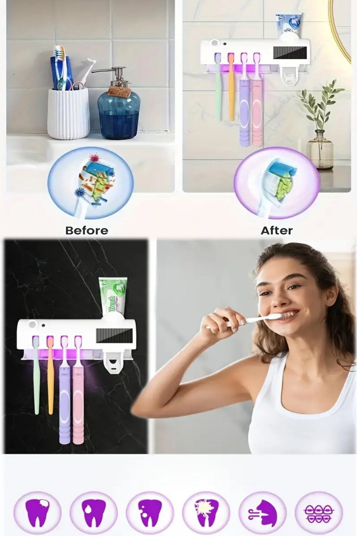 Diş Fırçası Tutacağı ve Uv Sterilizatörü Diş Fırçası Düzenleyeci Otomatik Diş Macunu Sıkıcı