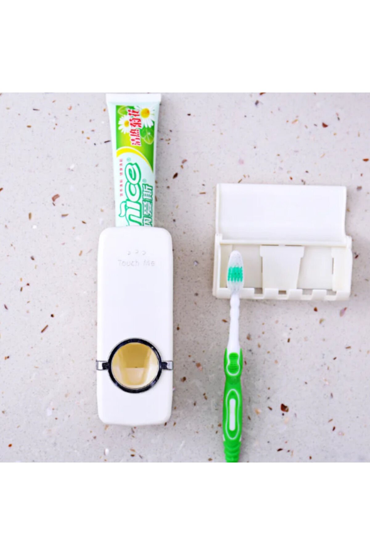 Bu cihaz sayesinde içine yerleştireceğiniz diş macunu tüpünüzden her zaman aynı miktardaki macunu, tam olarak sonuna kadar kullanabileceksiniz .Üstelik Vantuzları sayesinde delmeden vidalamadan çok kolay montaj. ; Cam, ayna, fayans, mdf gibi düz olan her türlü yüzeye monte edilebilir. ; 5 Adet diş fırçası koyma aparatı yanında gönderilmektedir. ; Ürün tamamen set olarak gönderilecektir. ; Diş macununu ortadan sıkma kavgalarına son. ; Üstelik lavabolarda oluşan lekelerde önler. ; Özellikler Her tip ve her boy diş macununa uygun. ; 5 Adet Diş Fırçası koyma Aparatı. ; Macunu son damlasına kadar kullanır. ; Diş hekimlerinin tavsiye ettiği miktarda... ; Lavabolarınızda diş macunu lekelerine son. ; Tamamen hijyenik. ; Ebatlar: Boy: 16 cm En: 6,5 cm Derinlik: 5 cm;