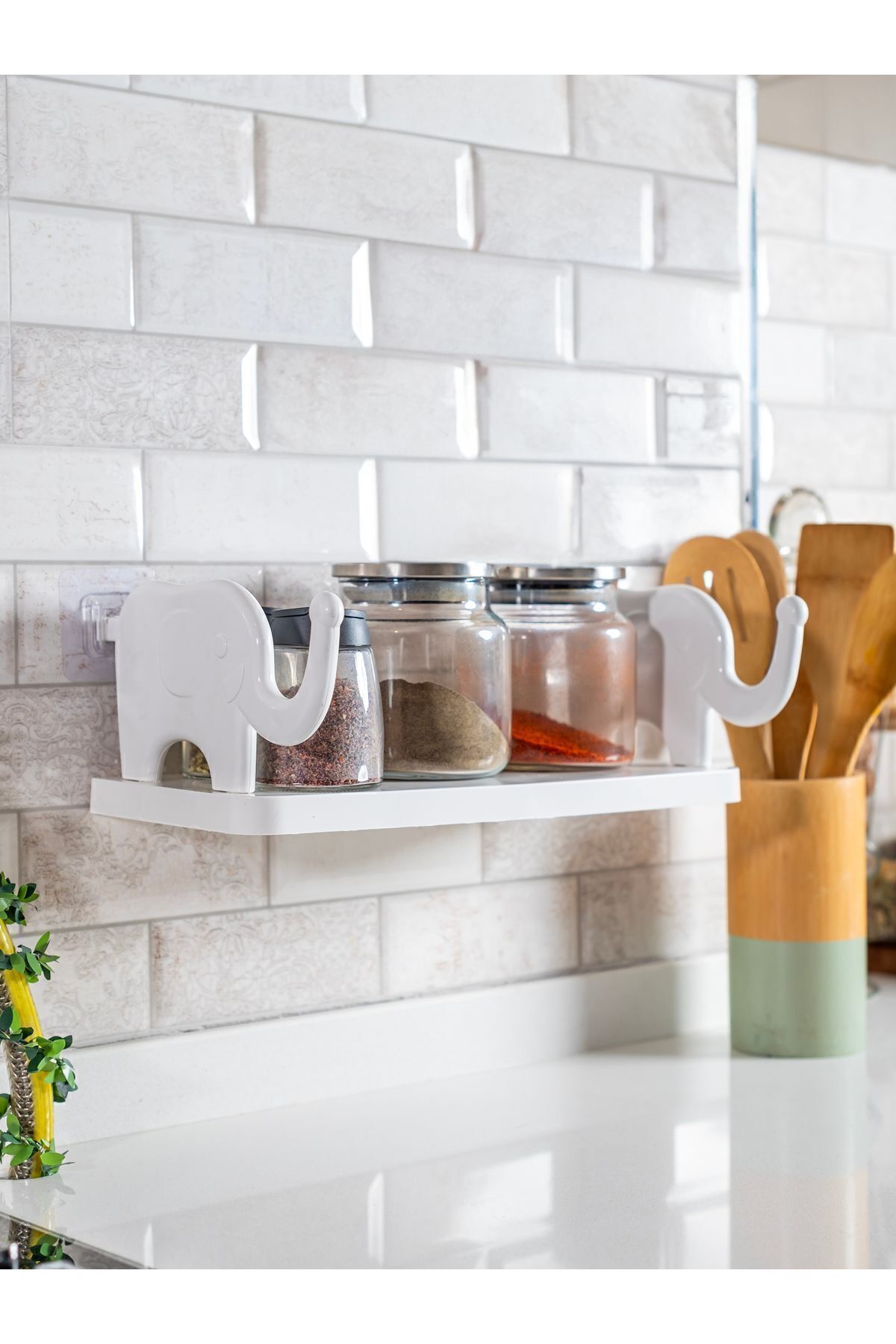 Düzenleyici FİLL Raf - Baharat Rafı - Kahve Rafı - Kendinden Yapışkanlı Banyo Rafı - Fil Figürlü Raf