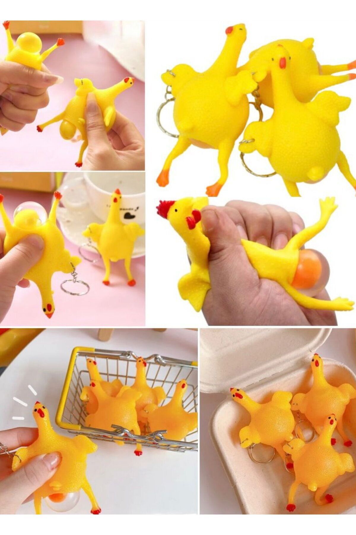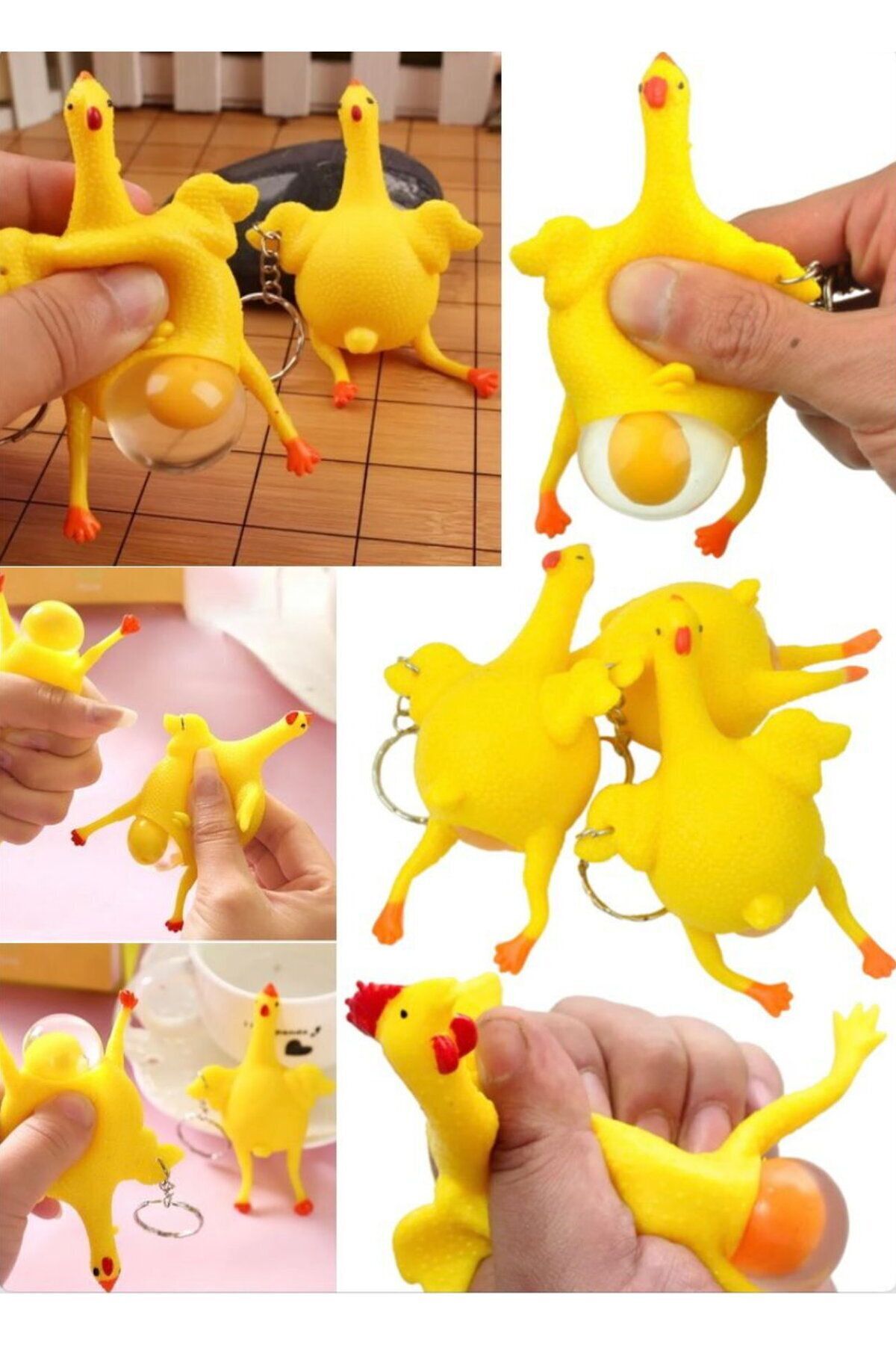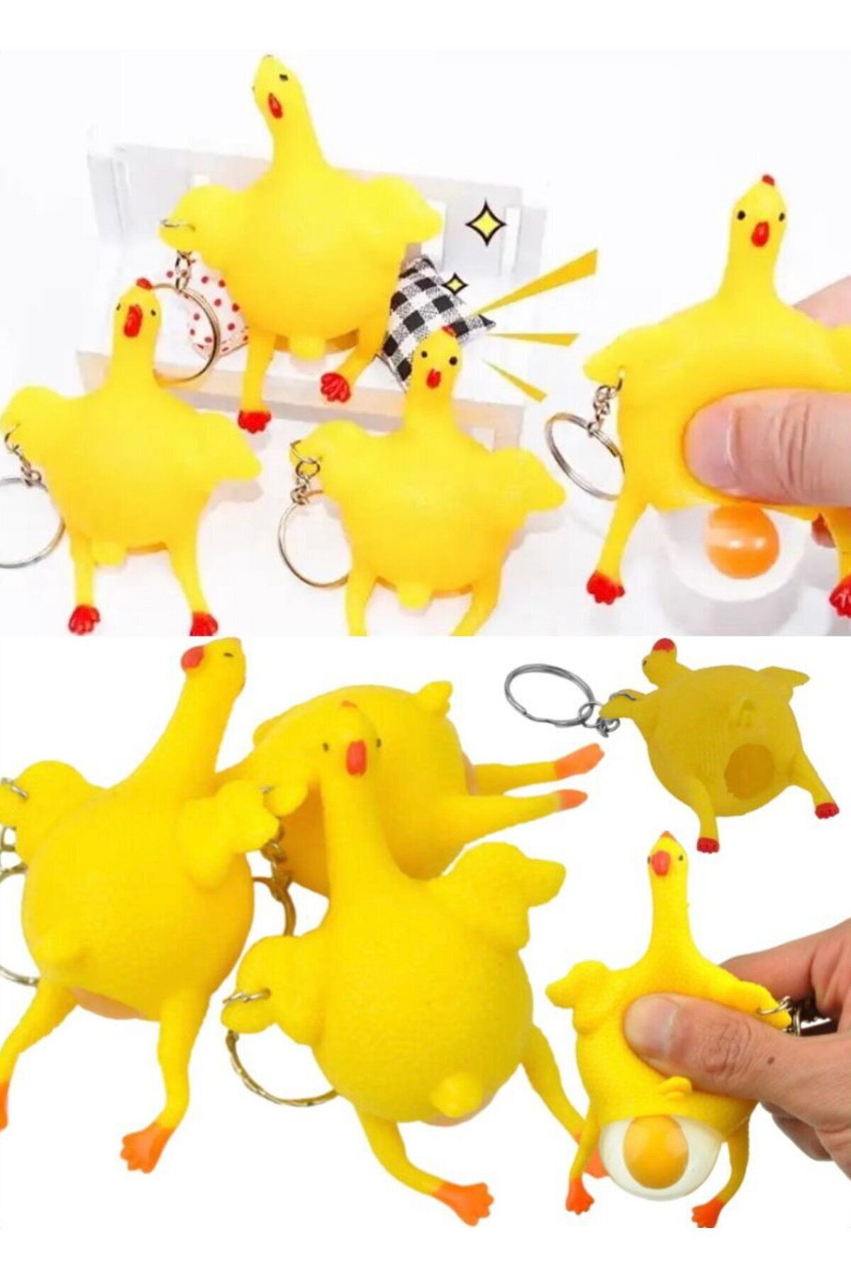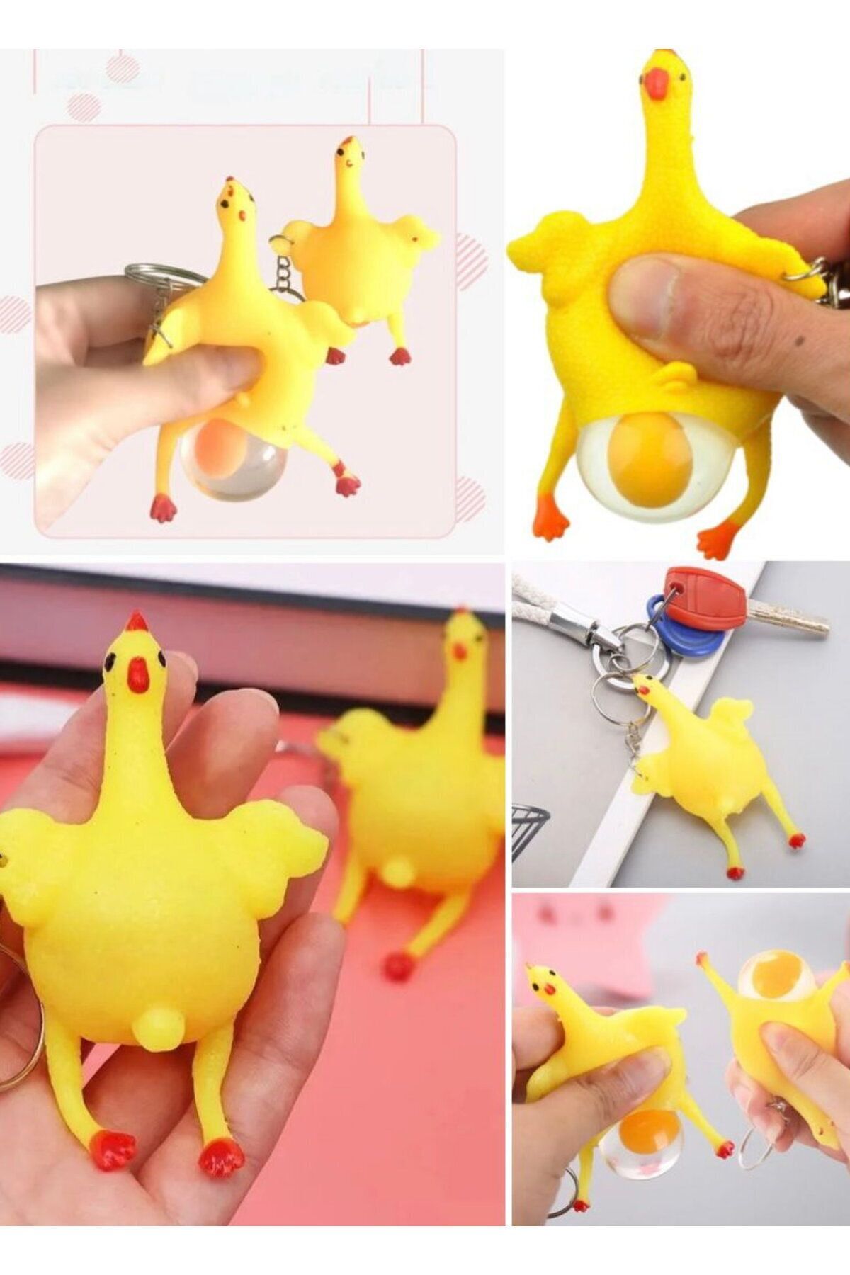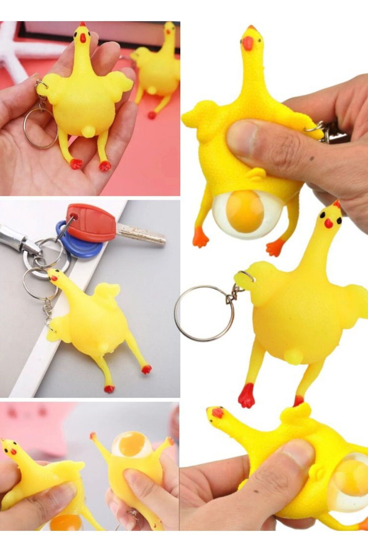 Eğlenceli Hediyelik Komik Anahtarlı Patlamaz Stres Yumurtlama Tavuk Oyuncak Sevimli Komik Anahtarlık