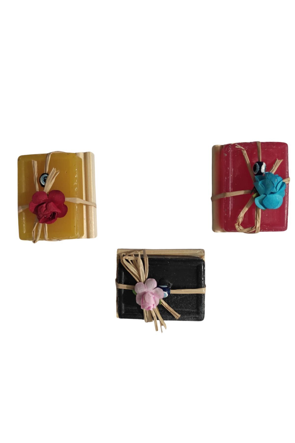 El Yapımı Ahşap Dekoratif 3lü Sabun Seti Hediyelik Nazar Boncuklu Söz Kına Nişan Düğün