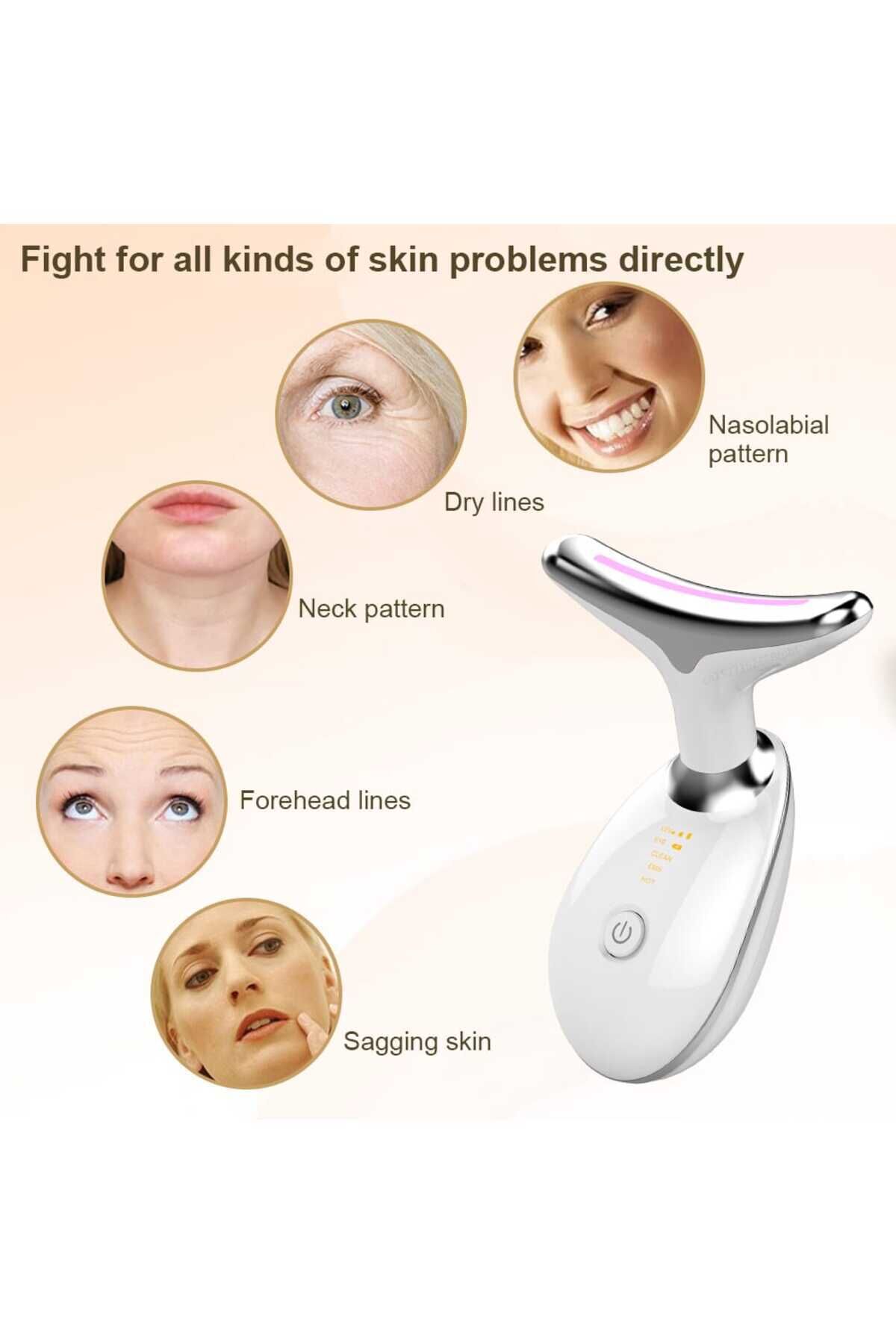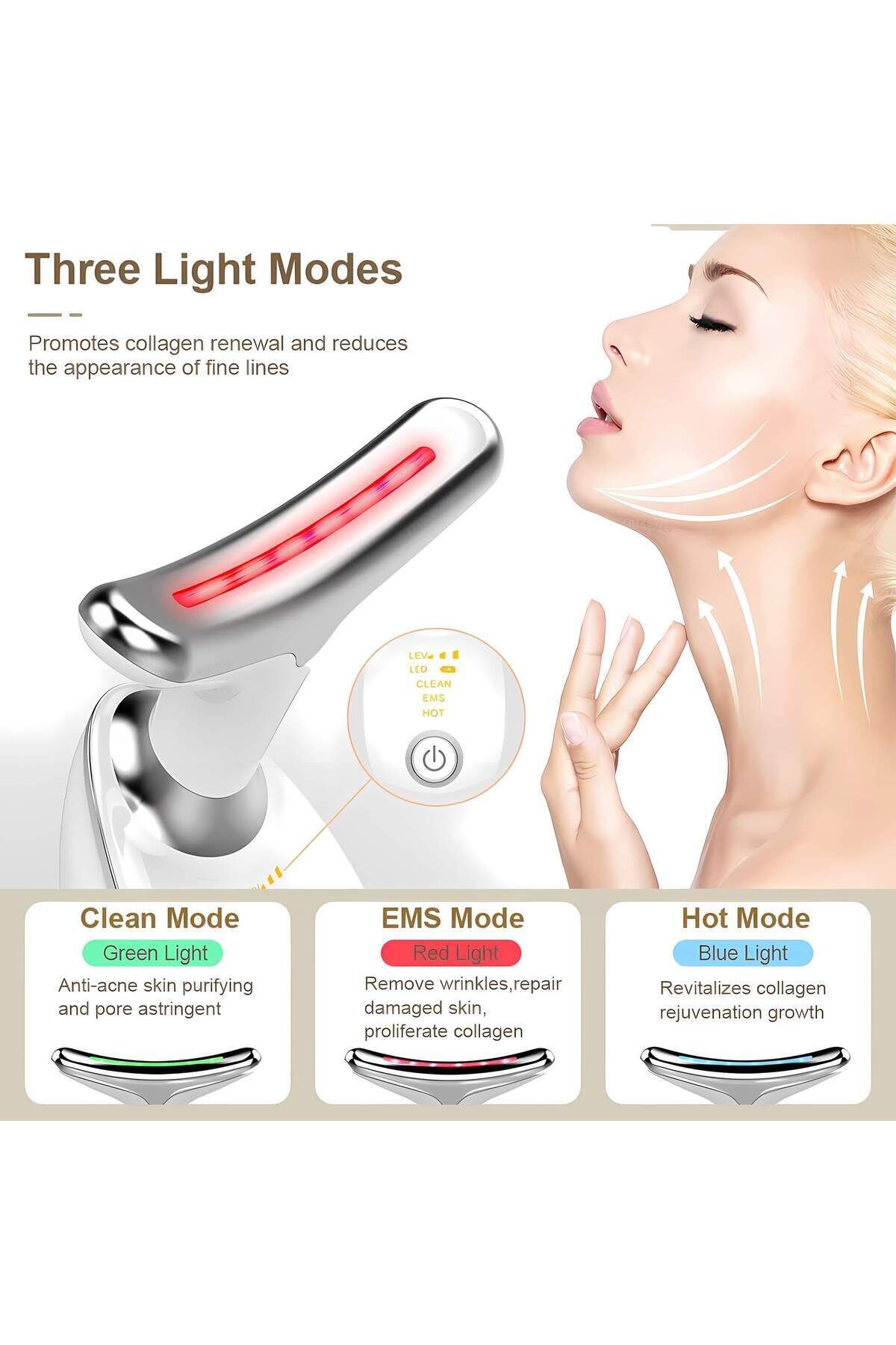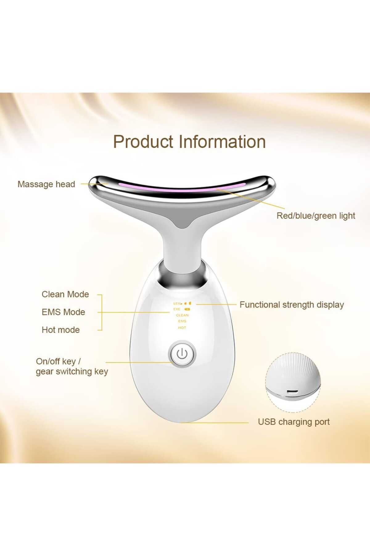 Ems Boyun Yüz Güzellik Cihazı Gıdık Sarkma Kırışık Giderici 7 Işık Led Cilt Bakım Sıcak Masaj Aleti
