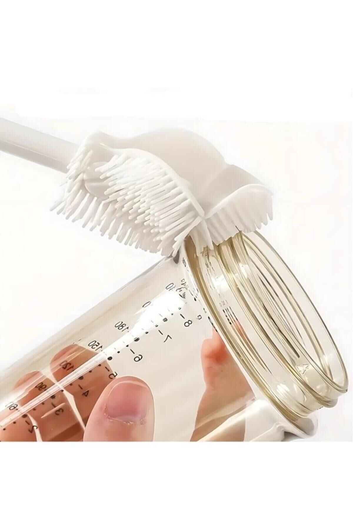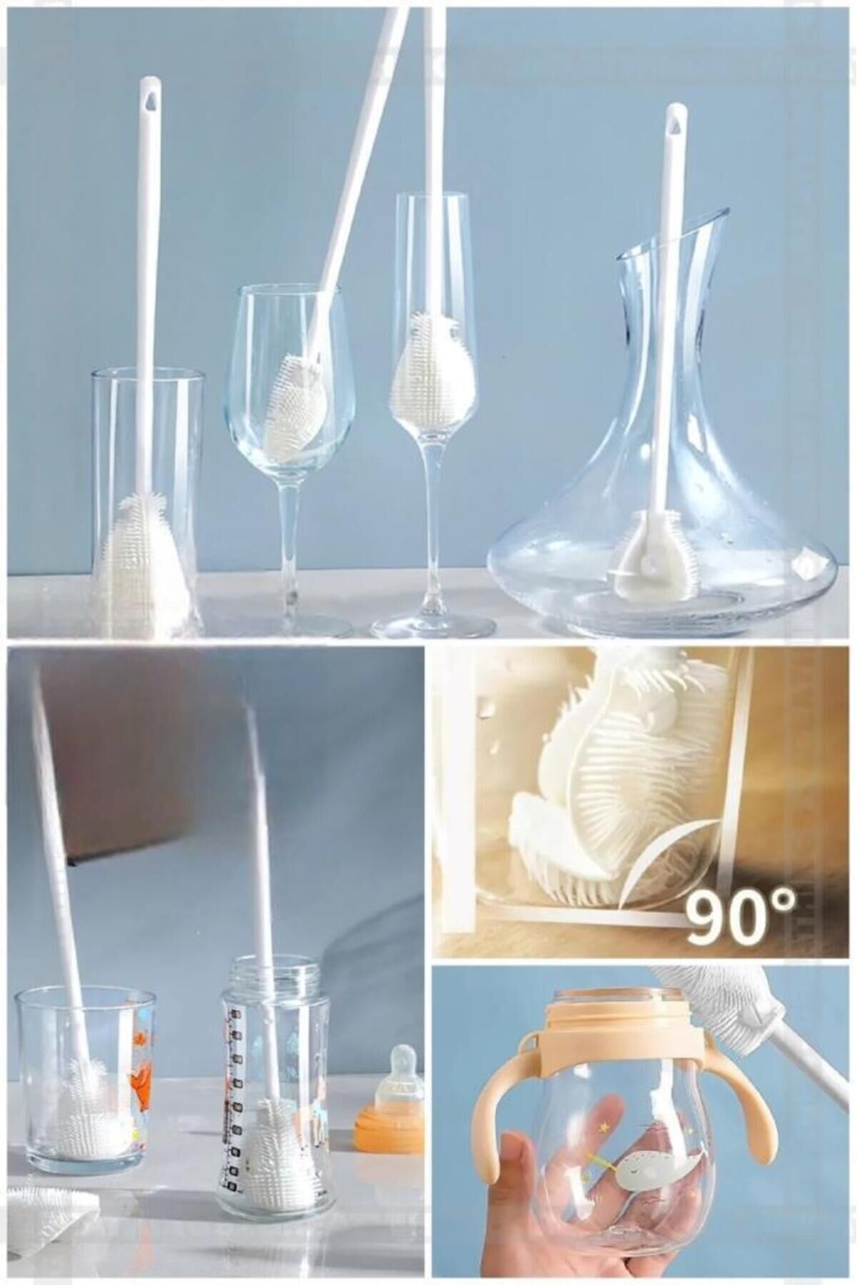 1 Adet Beyaz Renk Esnek Silikon Başlıklı Biberon Cam Şişe Bardak Kavanoz Temizleyici Fırça Uzun Saplı Suluk Termos Matara Yağdanlık Yıkama Fırçası Mutfak Süngeri Uzun sapı ile süt şişeleri, dar bardaklar, suluk, termos ve sürahi gibi dar girişli eşyalar için uygundur.; Biberon ve kavanoz gibi zor temizlenen tüm eşyalarınızın içerisine girerek küçük darbelerle sizi yormadan temizlemenize yardımcı olur.; 360 derecelik fırça açısı tasarımı, bardağı kalıntı bırakmadan temizler.; Fırçanın malzemesi güvenli ve çevre dostudur.; Biberon temizlemek için güvenilirdir.; Ürün Özellikleri: Malzeme: Gıda sınıfı sağlıklı silikondan üretilmiştir, Bpa içermez.; Renk: Beyaz Boyut: 6 cm x 7 cm x 31 cm Yumuşak ve İnce Kıllar: Silikon şişe fırçası, yumuşak ve ince kıllara sahiptir.; Bardak ve biberonları herhangi bir iz bırakmadan fırçalamayı ve temizlemeyi kolaylaştırır.; Kolay Temizlik İçin Katlanır Fırça Başlığı: Katlanabilir fırça başlığı, fincan alt köşelerinin ve boşluklarının kolayca temizlenmesini sağlayarak mutfak eşyalarınızın her zaman temiz görünmesini sağlar.; Pratiklik İçin Uzatılmış Sap: Uzun saplı biberon fırçasının uzatılmış bir sapı vardır, ulaşılması zor yerleri temizlemeyi kolaylaştırır ve uygun asma saklama özelliğiyle mikrop oluşumunu önler.; Kolay Temizlik: Suyu emmez, sıcak su ve sabun ile yıkanabilir.; Şişe biberon temizleme fırçası sıcaklığa dayanıklıdır ve kaynar suda sterilize edilebilir.; Leke Çıkarma İçin İnce Kıllar: Yumuşak kıllı silikon fırça, ince kıllarla tasarlanmış olup, biberon ve cam eşyalarınızı çizmeden veya zarar vermeden etkili leke çıkarma sağlar.; Geniş Uygulamalar: Çok yönlü tasarımıyla şişe fırçamız, bardaklar, biberonlar, spor bardakları, şarap bardakları, çay fincanları, kupalar ve daha fazlasını içeren çok çeşitli bardak ve şişeleri temizlemek için uygundur ve yalnızca 1 kaydırmayla kapsamlı temizlik sağlar.; Biberon temizleme fırçamız, bardaklar, biberonlar, spor bardakları, şarap bardakları, çay fincanları, kupalar ve daha fazlası dahil olmak üzere zorlu temizlik görevlerinin üstesinden gelebilir.; Paket İçeriği: 1 Adet Uzun Saplı Silikon Biberon Suluk Cam Şişe Yıkama Fırçası Not: Ambalajı açılan ve kullanılan ürünlerin iadesi kabul edilmemektedir.; Ürün kullanım videolarına internette arama yaparak ulaşabilirsiniz.