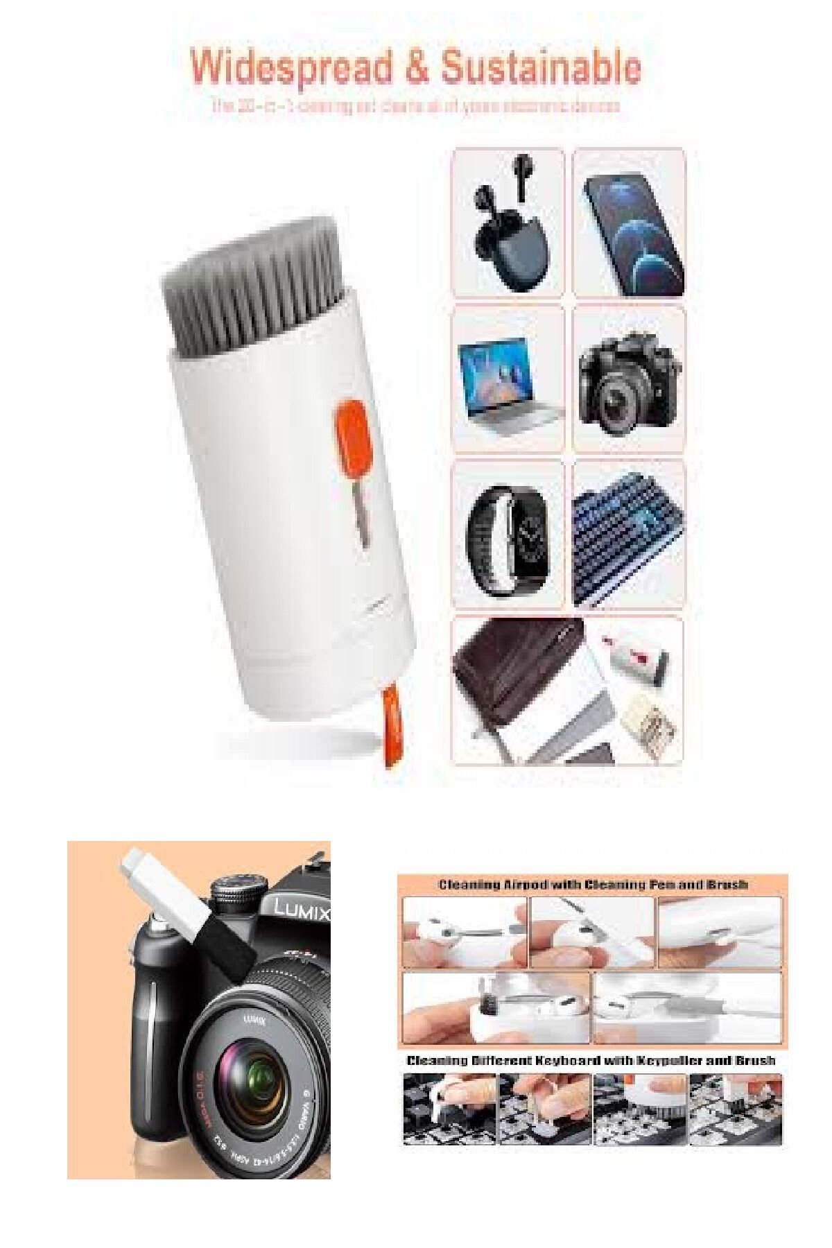 - 20'si 1 arada çok fonksiyonlu temizleyici araç, AirPods, iPad, iPhone, bilgisayarlar, AirPods şarj kutuları, laptoplar, telefonlar, tabletler, kulaklıklar ve kameralar gibi çeşitli cihazlar için etkili temizlik sağlar.