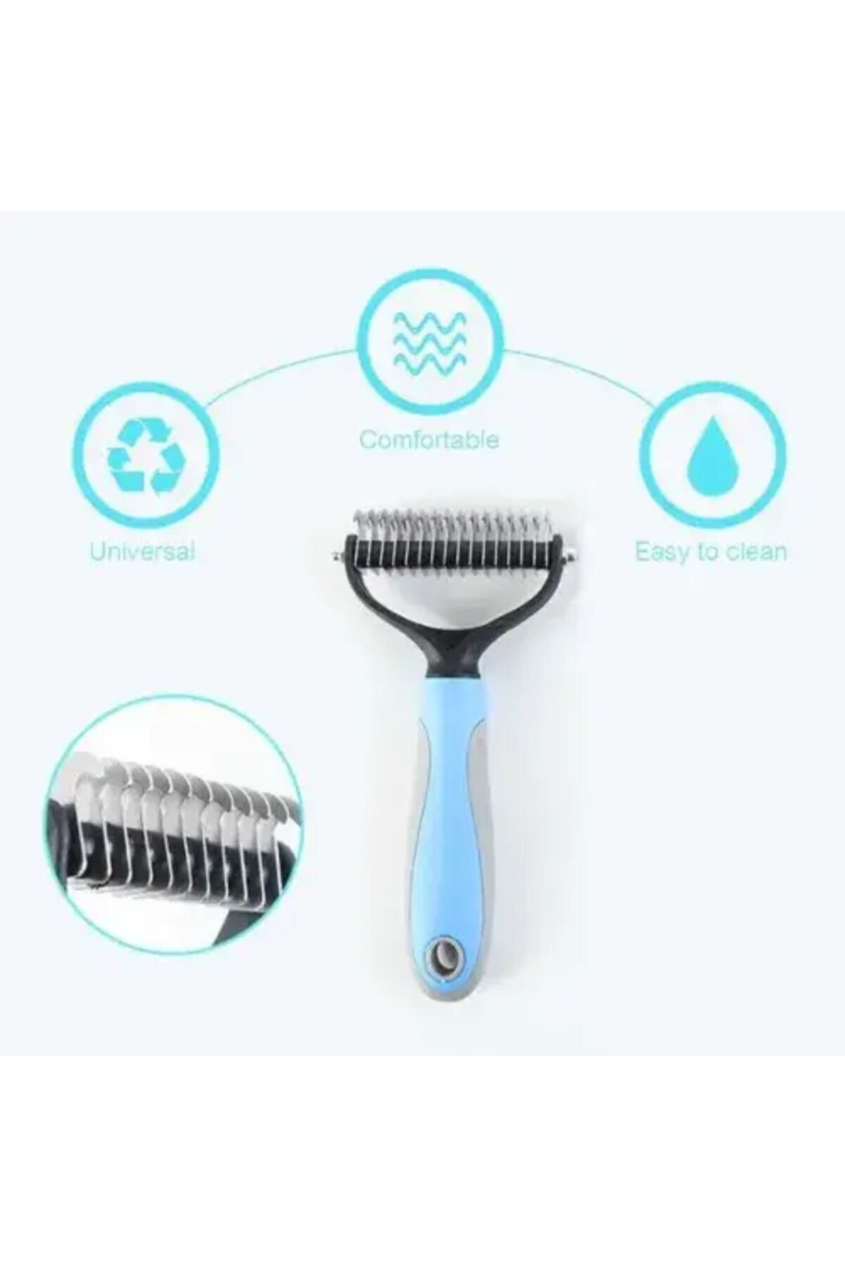EVCİL HAYVAN KITIK AÇICI TARAKÜrün ÖzellikleriÇift taraflı tasarım, daha hızlı ve daha profesyonel kıtık açma sonuçları elde eder. Kaymaz malzeme sayesinde kolay tutuş sağlar. Kıtık açıcı aynı zamanda cilde masaj yaparak evcil hayvanınızın rahatlamasını sağlar. Karışmış tüyleri, kesmeden ve koparmadan ayırır. Paket İçeriği1 adet evcil hayvan kıtık açıcı tarak