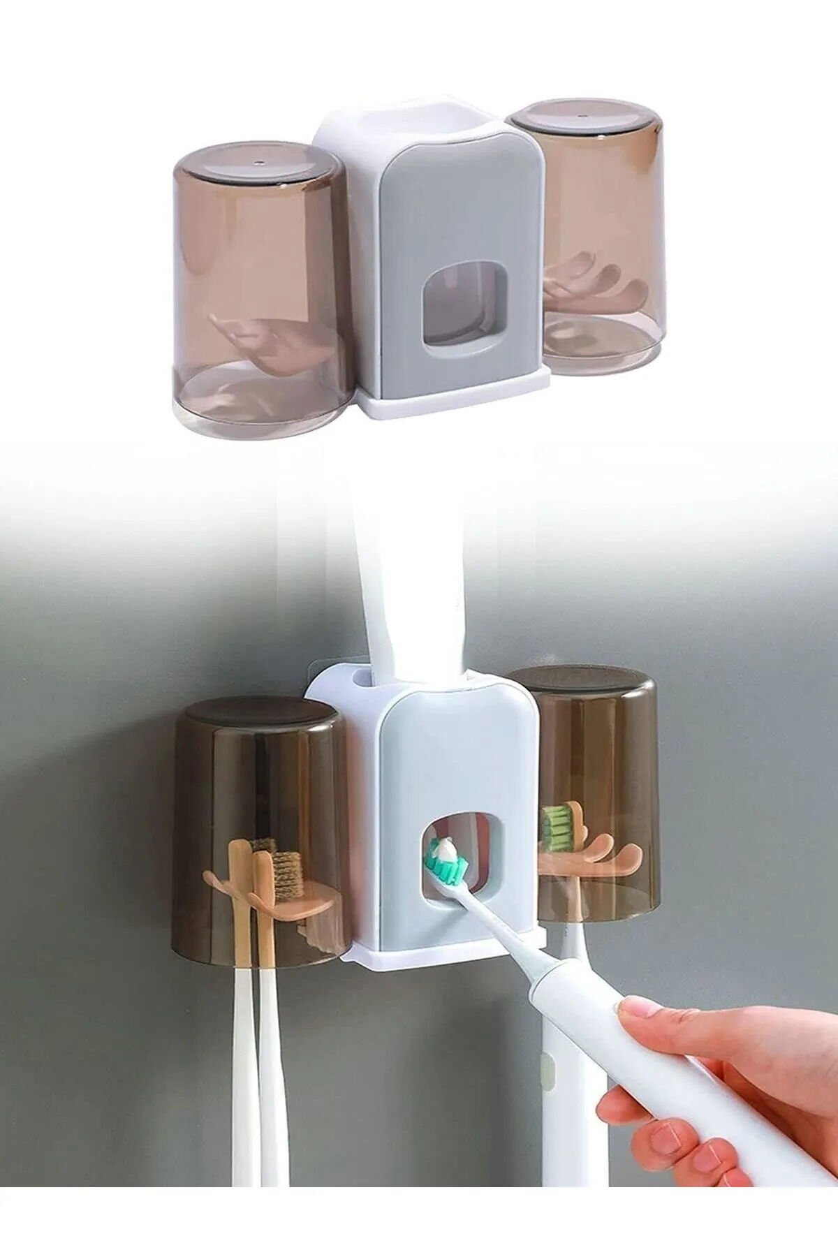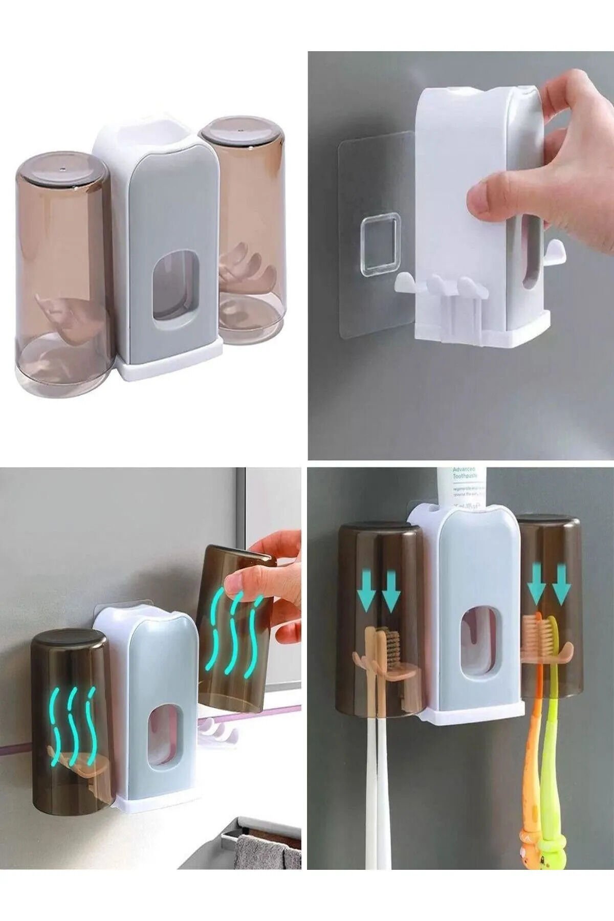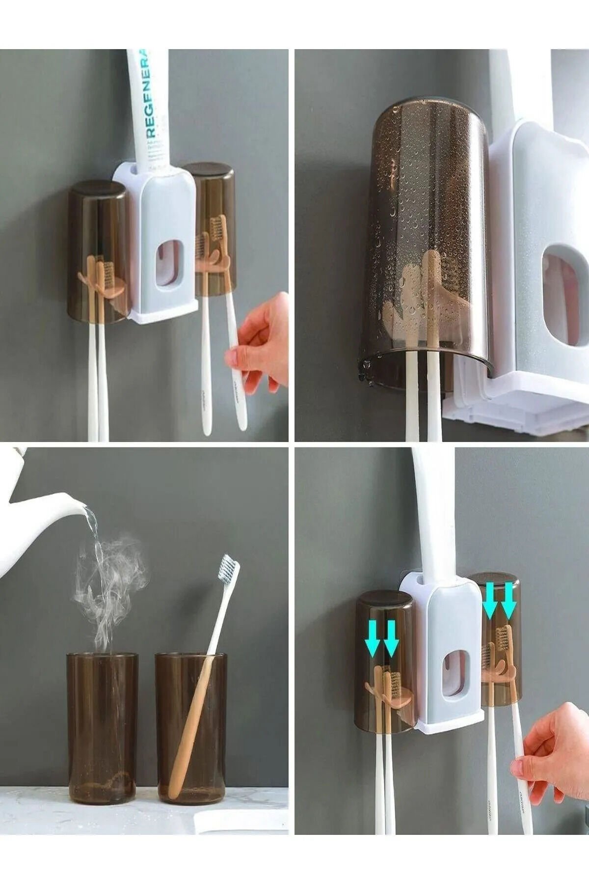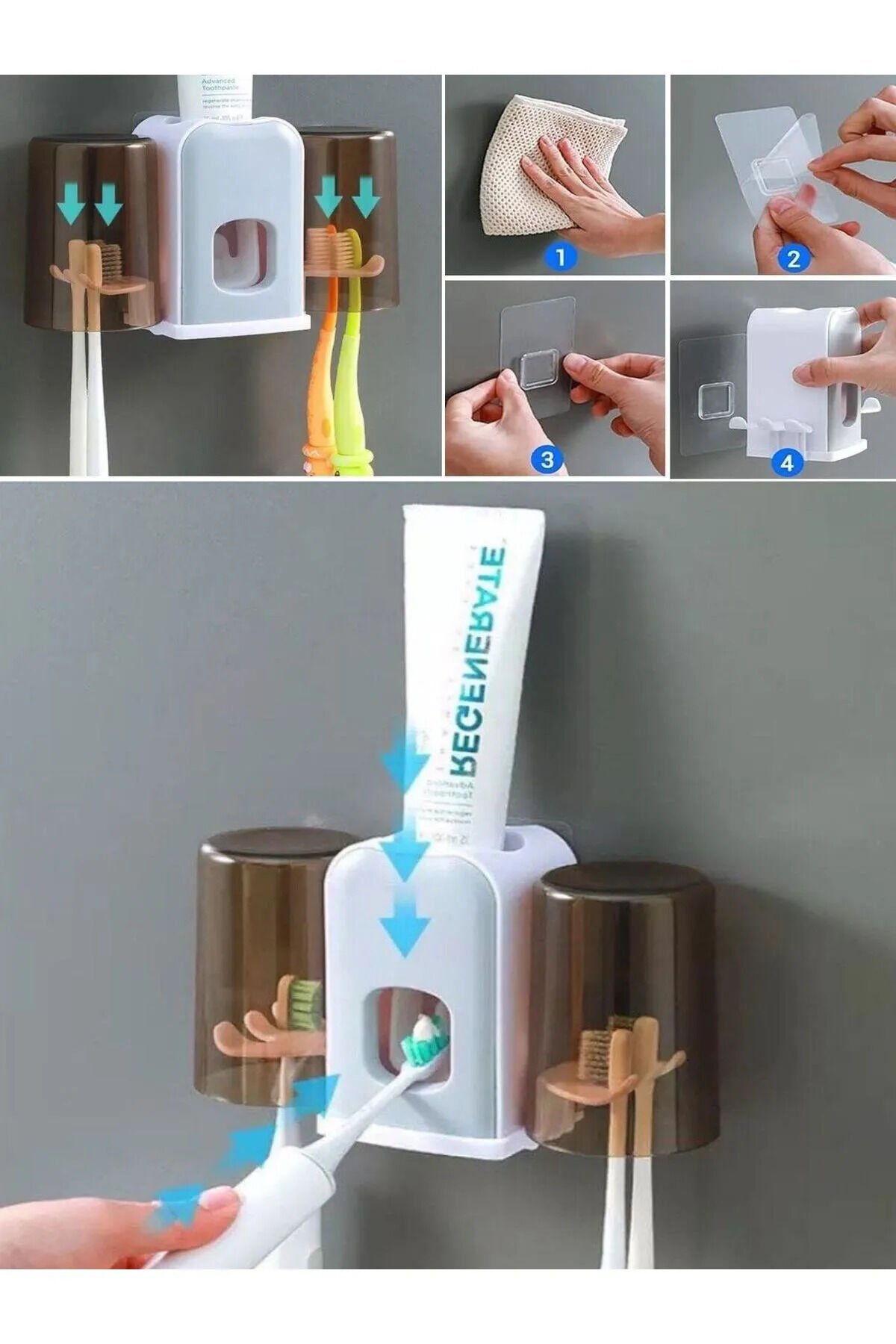 Fayansa,duvara Yapışabilen 2 Kupalı Steril Otomatik Diş Macunu Sıkma Kiti Aparatı Macunluk