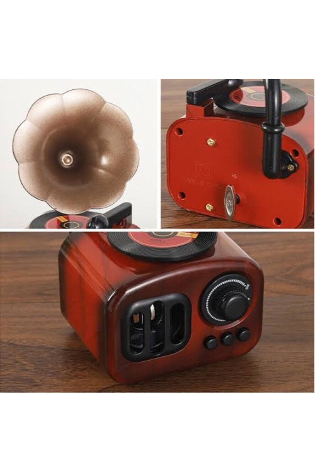 GRAMOFON MÜZİK KUTUSUAhşap retro görünümlü plastik malzemeden üretilen bu gramofon müzik kutusu, nostaljik bir şıklığı modern tasarım ile birleştirir.; Zarif ahşap deseni, ürüne sıcak ve çağdaş bir hava katar.; Mekanizması, klasik bir gramofon gibi çalışarak vintage bir deneyim sunar.; Hem görsel açıdan çekici hem de kullanışlı olan bu müzik kutusu, evinize eşsiz bir atmosfer katmak için tasarlanmıştır.; Müzik kutusunun detaylı ahşap deseni, retro atmosferi daha da vurgulayarak ürüne karakter katar.; Plastik malzemenin hafifliği, taşınabilirlik ve dayanıklılık sağlar.; Gramofon tasarımı, müzik kutusuna nostaljik bir hava katar ve kullanıcıya geçmişin büyüsünü yaşatır.; Bu özel müzik kutusu, hem estetik bir dekoratif parça olarak öne çıkar, hem de günümüz teknolojisini kullanarak klasik müziği modern bir şekilde sunar.; Paket İçeriği1 adet gramofon müzik kutusu
