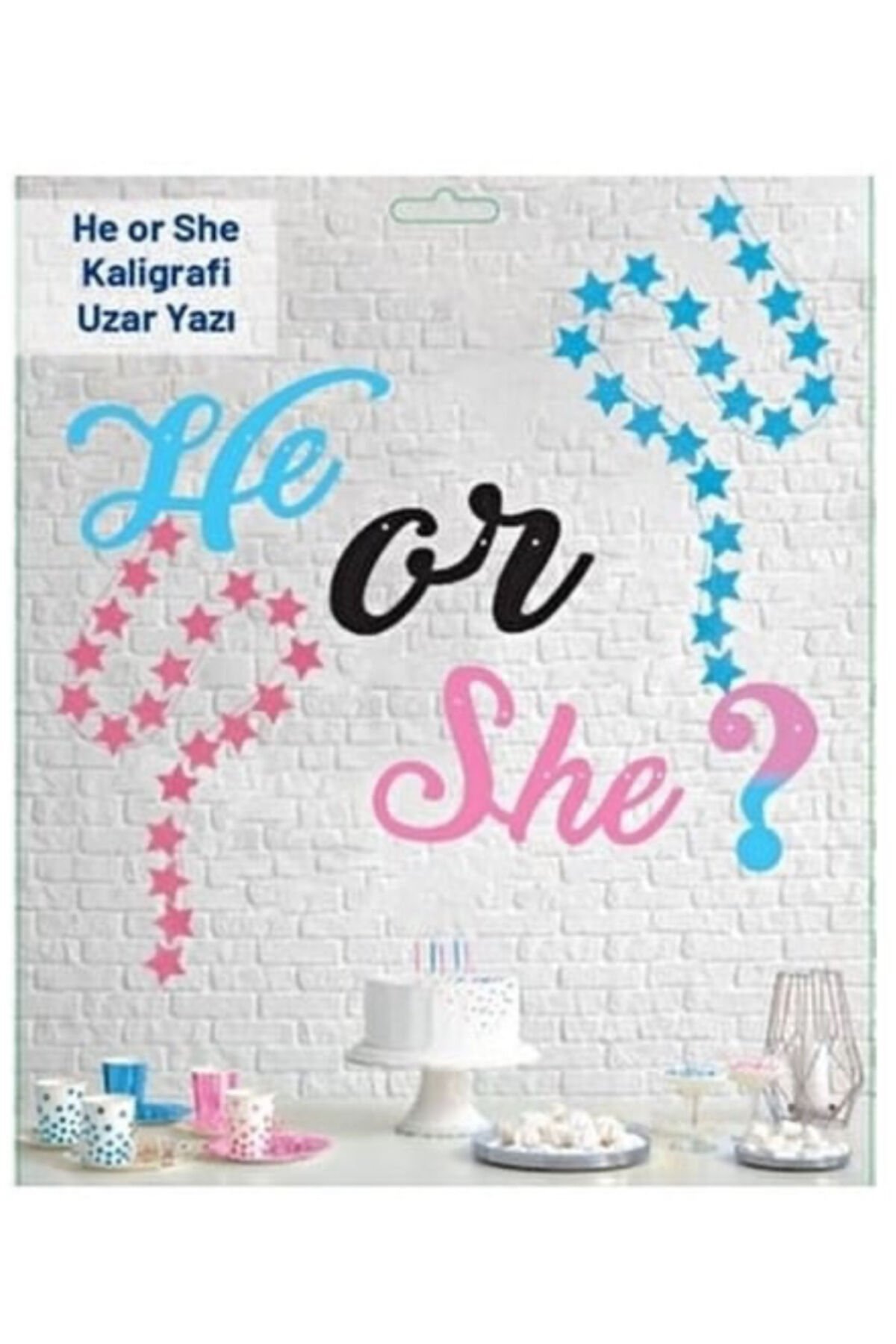 - He or She? kaligrafi yazı tasarımı, cinsiyet partilerinizde şıklığı ve eğlenceyi bir araya getirir.; - Mavi ve pembe renk kombinasyonu ile hem erkekler hem de kızlar için uygun bir atmosfer yaratır.; - Her yaş grubuna hitap eden bu süsleme, herkesin keyif alabileceği bir parti ortamı oluşturur.; - Web color özelliği sayesinde dijital dünyada da kolayca paylaşılabilir ve herhangi bir platformda sergilenebilir.