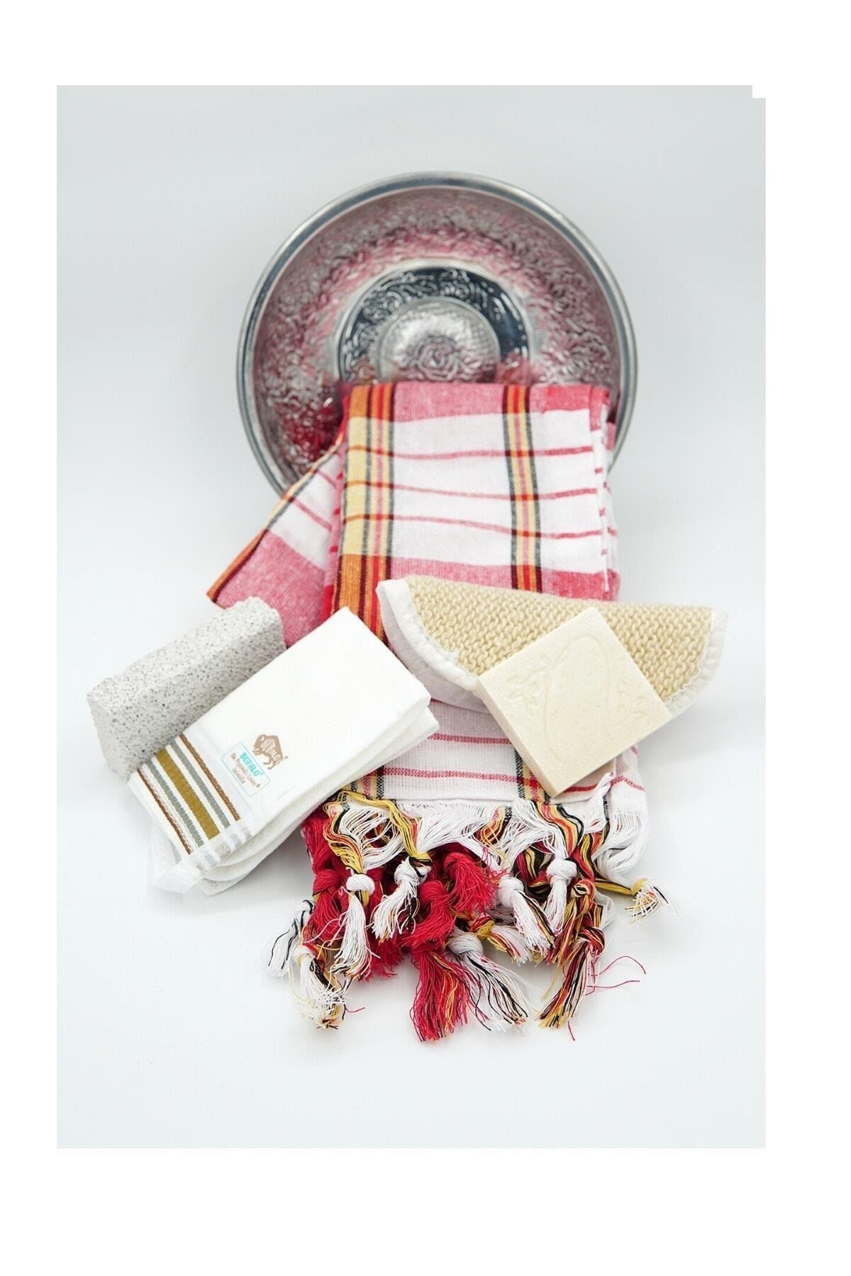 Set içeriği; Özel Bursa desenli hediyelik kutusunda Paslanmaz Hamam Tası, 80x180 Peştemal, Doğal Lif, Lüx Kese, Topuk Taşı, Zeytinyağlı Sabun Bu ürün birçok büyük işletme tarafından yabancı misafirlerine hediye olarak veriliyor.