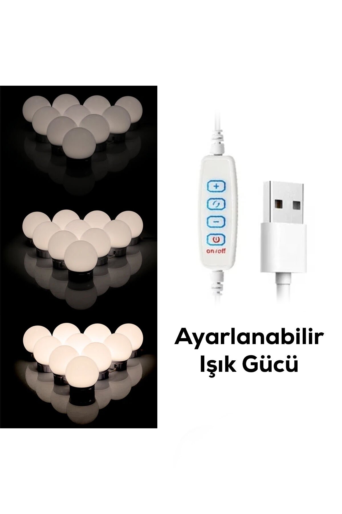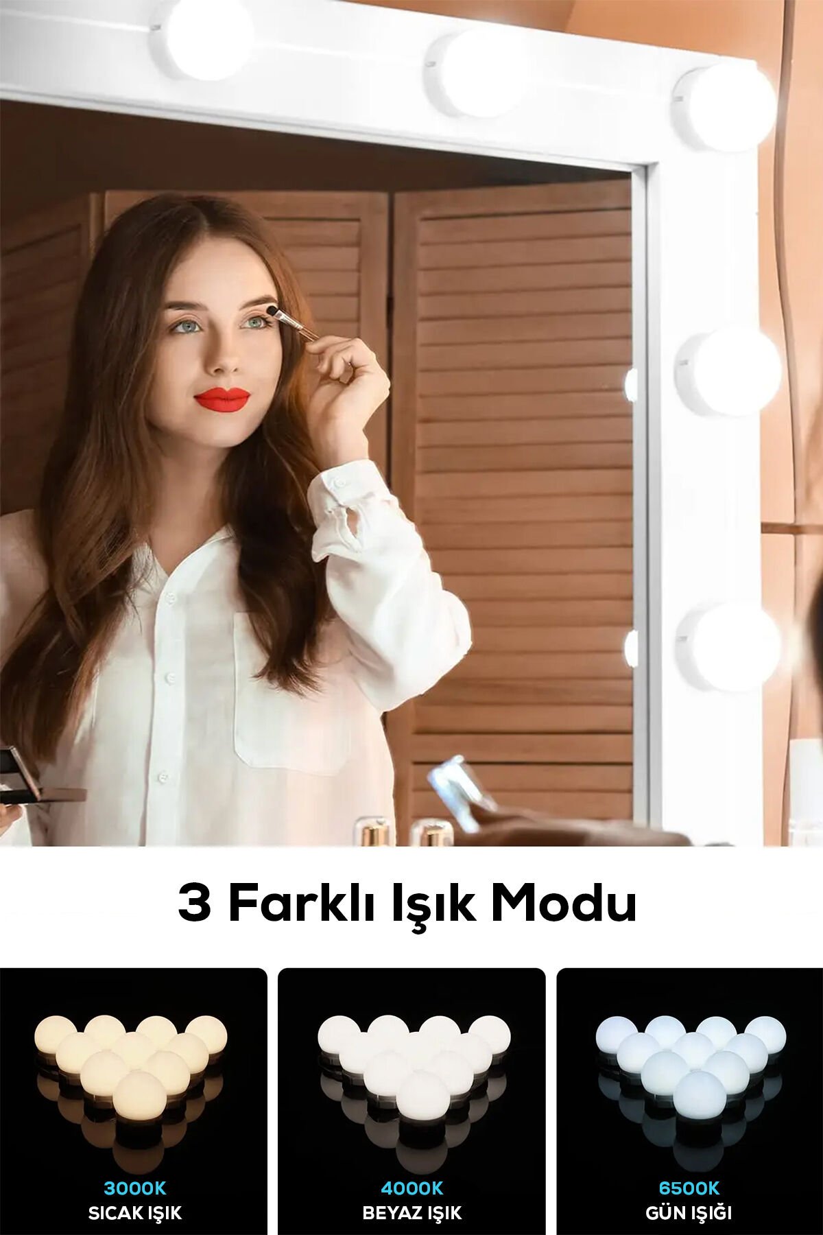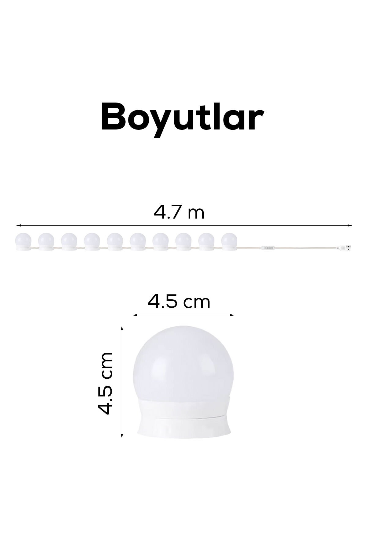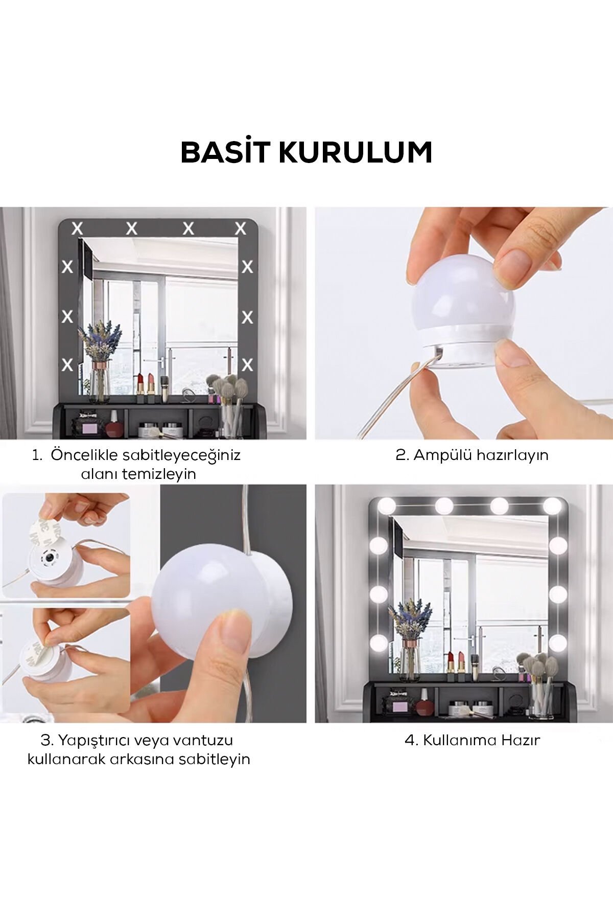 Hollywood Makyaj Aynası Led Işıklandırma Seti – 10 Ampullü Işık Ayarlı Ayna Aydınlatması