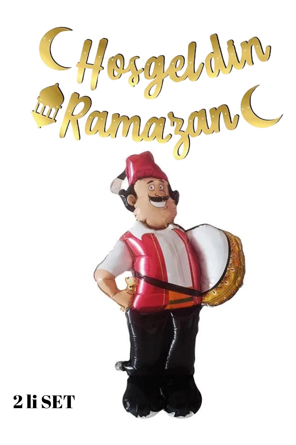 Hoşgeldin Ramazan Uzar Yazı Banner Ramazan Davulcusu Ayaklı Folyo Balon Set.; RAMAZAN SÜSLERİ.; RAMAZAN DAVULCUSU AYAKLI FOLYO BALONÜrün ÖzellikleriRamazan Davulcusu Ayaklı Folyo Balon, folyo balon olarak tasarlanmış, davulcu karakteri şeklinde bir dekoratif üründür.; Özellikle Ramazan ve bayram kutlamalarına özel olarak kullanılan bu balon, geleneksel davulcu figürünü yansıtarak eğlenceli ve renkli bir atmosfer yaratır.; Balon, geleneksel davulcu karakterinin detaylı bir tasvirini içerir.; Kırmızı kıyafet, davul ve eğlenceli yüz ifadesiyle dikkat çeker.; Folyodan üretilmiş olup, uzun süre dayanıklıdır ve havanın içinde uzun süre şişirilmiş olarak kalabilir.; Özellikle Ramazan ve bayram kutlamalarında, evde, iş yerlerinde veya etkinliklerde dekorasyon amaçlı kullanılabilir.; Genellikle büyük boyutlarda olup, etrafındaki alanı hareketlendirir ve dikkat çeker.; Bu folyo balon, Ramazan atmosferi yaratmak için eğlenceli ve renkli bir dekoratif ürün olacaktır.; Ürün Ölçüleri 119 x 77 cm Paket İçeriği1 adet Ramazan Davulcusu Ayaklı Folyo Balon