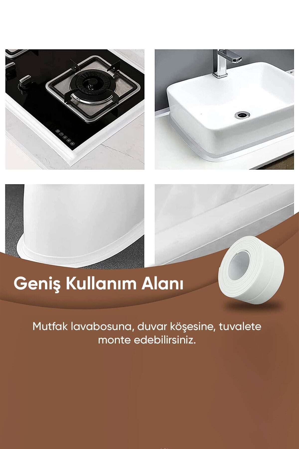 Su Sızdırmaz Geçirmez Bant Lavabo Küvet Kenar Bandı Mutfak Banyo Sızdırmaz bant uzun ömürlü bir sızdırmazlık sağlar ve mutfak ve banyo alanlarına profesyonel bir görünüm kazandırır.; ; Yüksek kaliteli PE malzemeden yapılmış, geleneksel PVC'den daha güçlü yapışkanlık ve yapışma özellikleri.; ; Su geçirmez, neme dayanıklı, küfe dayanıklı, yağ geçirmez, sağlam ve dayanıklıdır, profesyonel bir görünüm sağlar.; ; Kullanım: - Ürünü kullanacağınız yüzey deterjan, toz ve nemden tamamen arındırılmış olmalıdır.; ; - Yapıştırdıktan sonra 1 dakika saç kurutma makinesi ile ortalama 30 cm uzaklıktan tutarak ısıtınız.; ; - Daha etkili yapışma için 24 saat boyunca bant ıslanmamalıdır.; ; Boyut:3,2 m x 38 mm Stoklarımızda beyaz rengi bulunmaktadır.;
