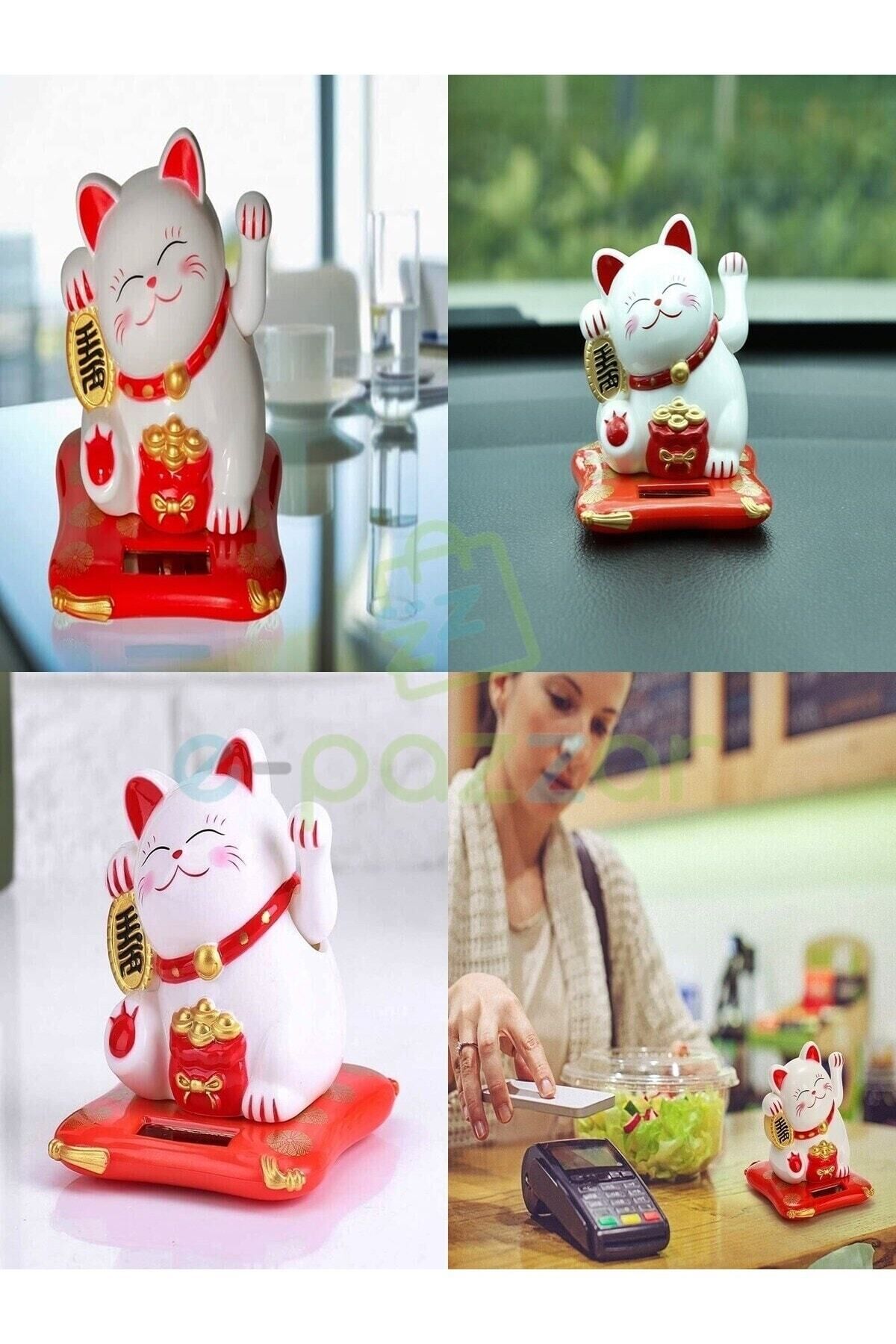 Japon Kültürü Bereket Şans Mutluluk Çağıran Şans Kedisi Solar Panelli Hareketli Pati Maneki Neko
