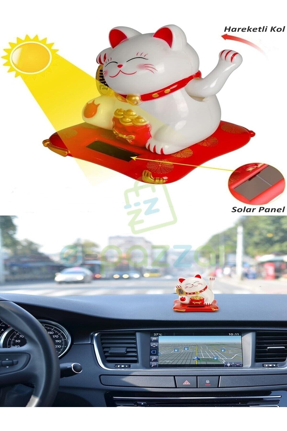 Japon Kültürü Bereket Şans Mutluluk Çağıran Şans Kedisi Solar Panelli Hareketli Pati Maneki Neko