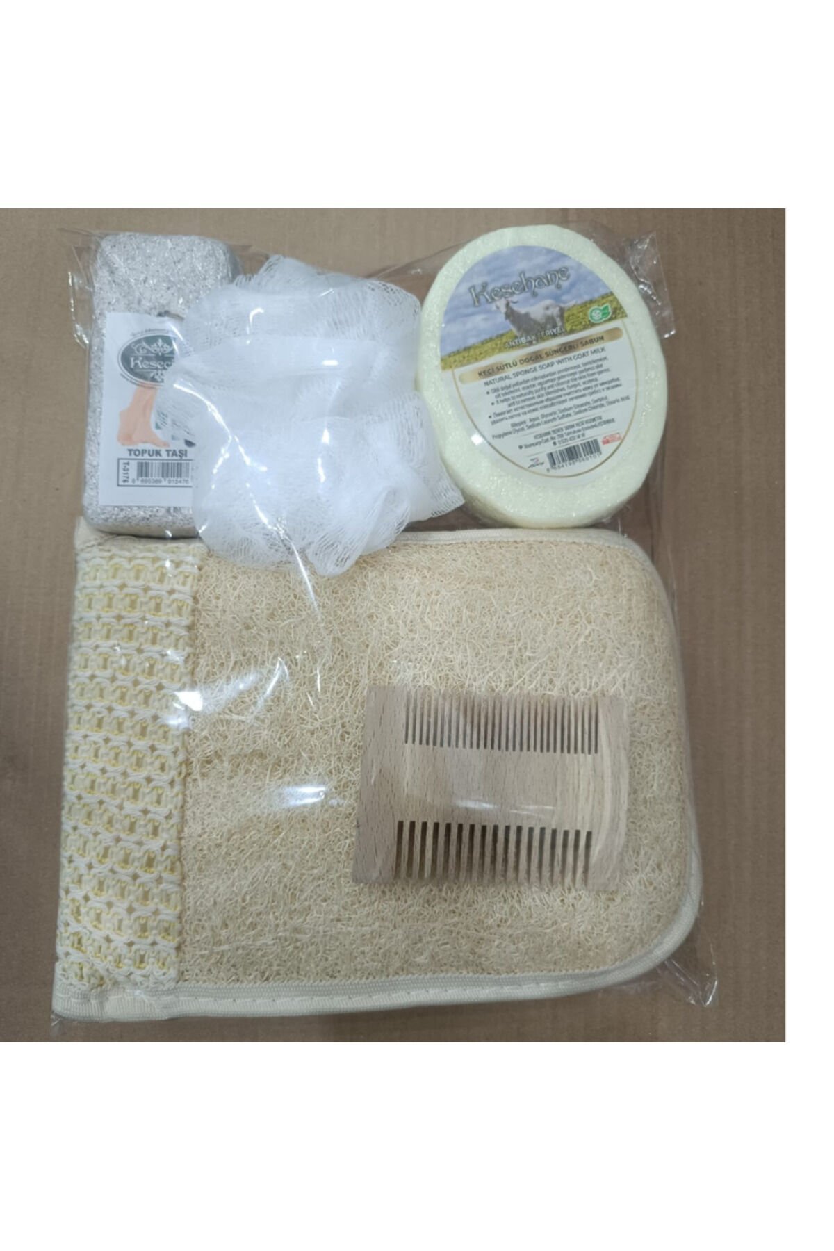 Kabak Lifi Eldiven, Topuk Taşı, Banyo Lifi,Süngerli Sabun,Kese,Ahşap Tarak Banyo Hamam Seti
