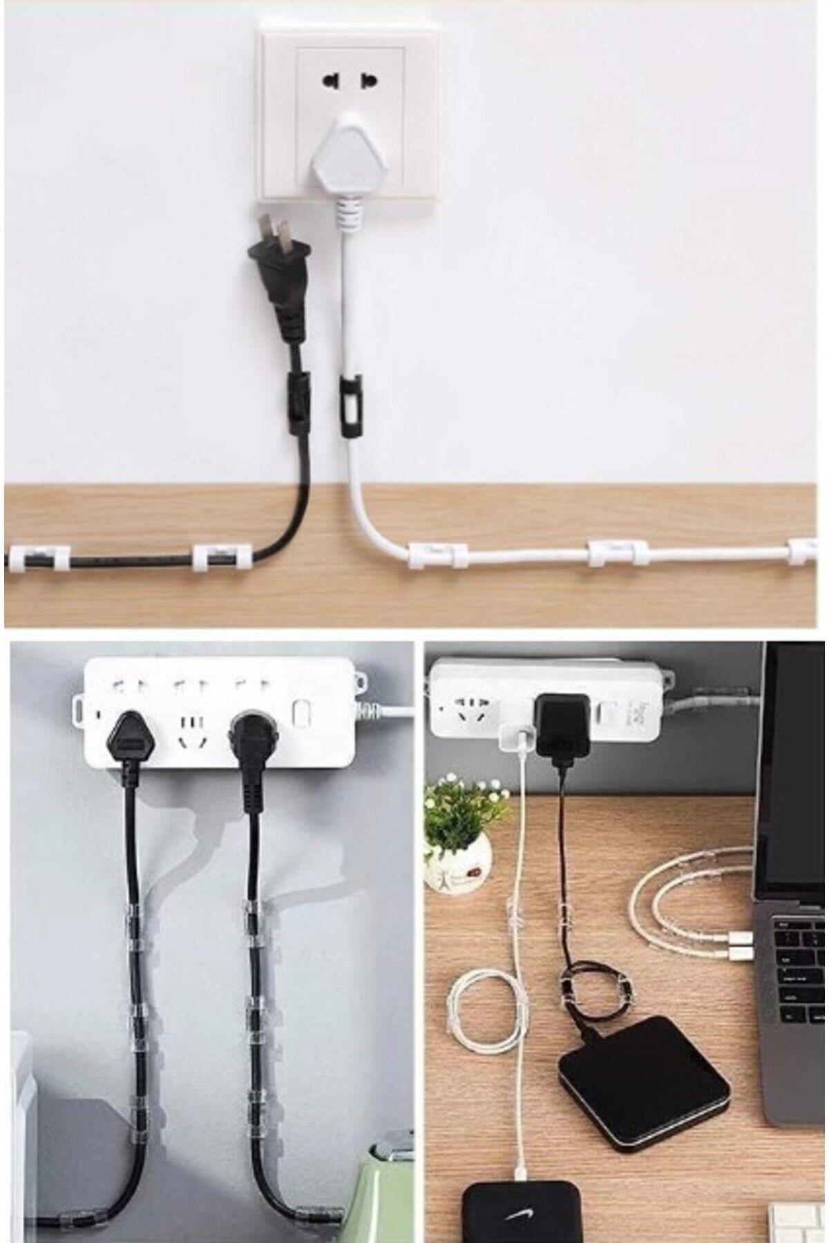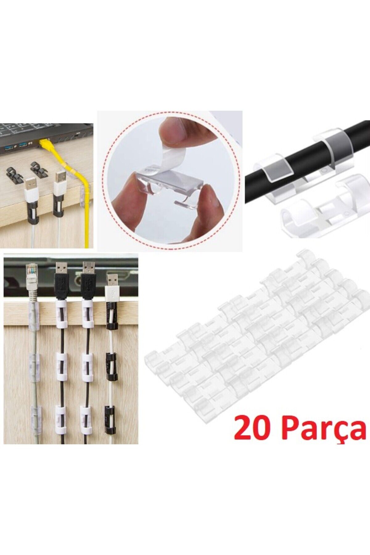 KABLO SABİTLEYİCİ KLİPS SETİ 20 ADET Montaj yüzeyinin temiz ve kir, toz, yağ ve balmumu içermediğinden emin olun.; Yüzeyi silin ve yüzeyin tamamen kurumasına izin verin.; Yapışkan bandın arkasını çıkarın ve kablo klipsine uygulayın.; Kalan desteği çıkarın ve istenen yüzeye yapıştırın.; Başparmağınızla kablo kelepçesi üzerindeki baskıyı uygulayın ve 10 saniye boyunca sıkın.; Tutkal gerçekten yapılana kadar onlara birkaç dakika boyunca ağırlık koymayın.; Kabloları klibe takın ve kilitleyin.; Sık sık hareket etmekten kaçının.; Paket İçeriği20 adet kablo sabitleyici klips seti