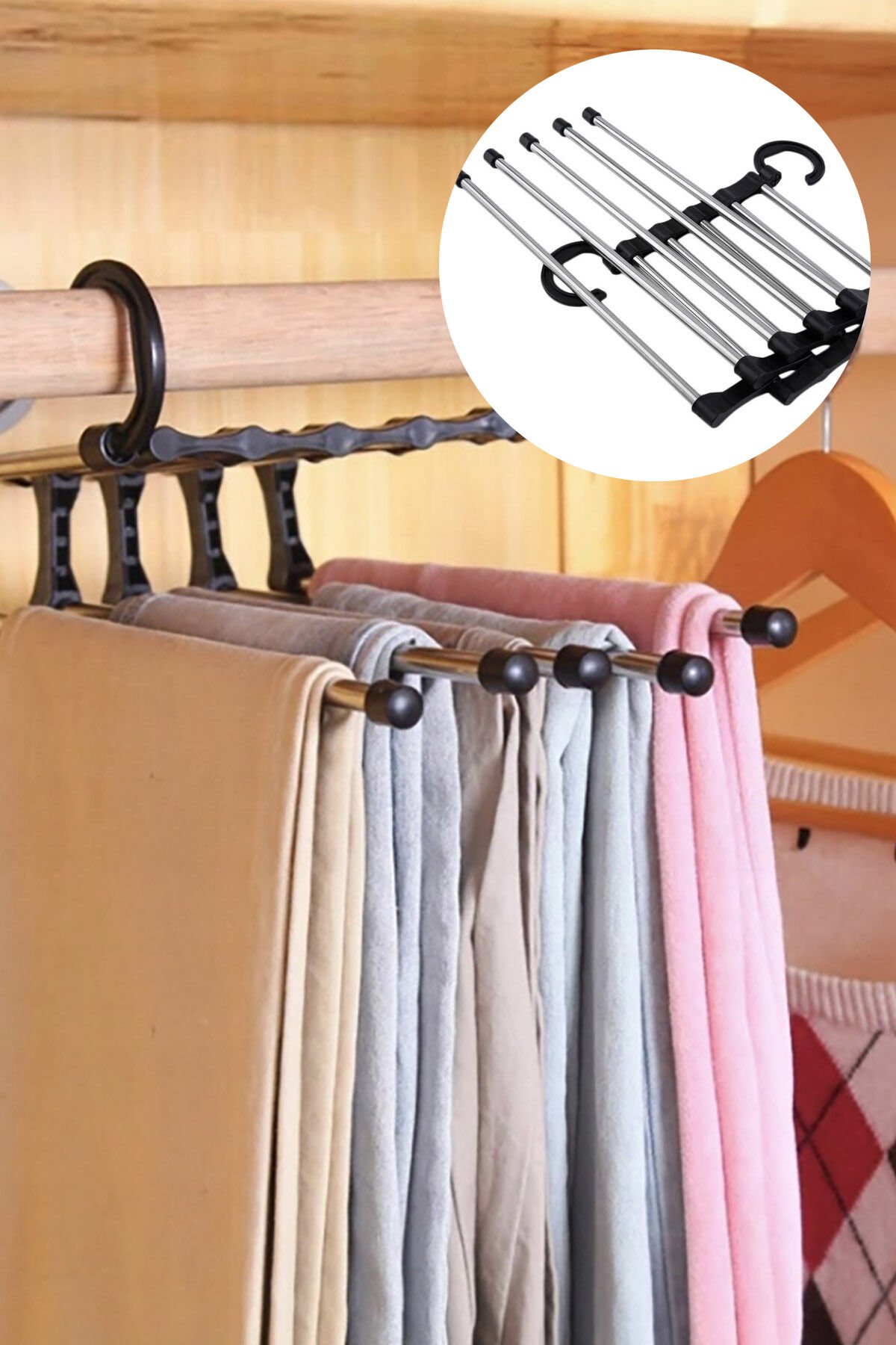 Katlanabilir 5li Pantolon Askısı Hareketli Dolap Içi Askı Sistemi