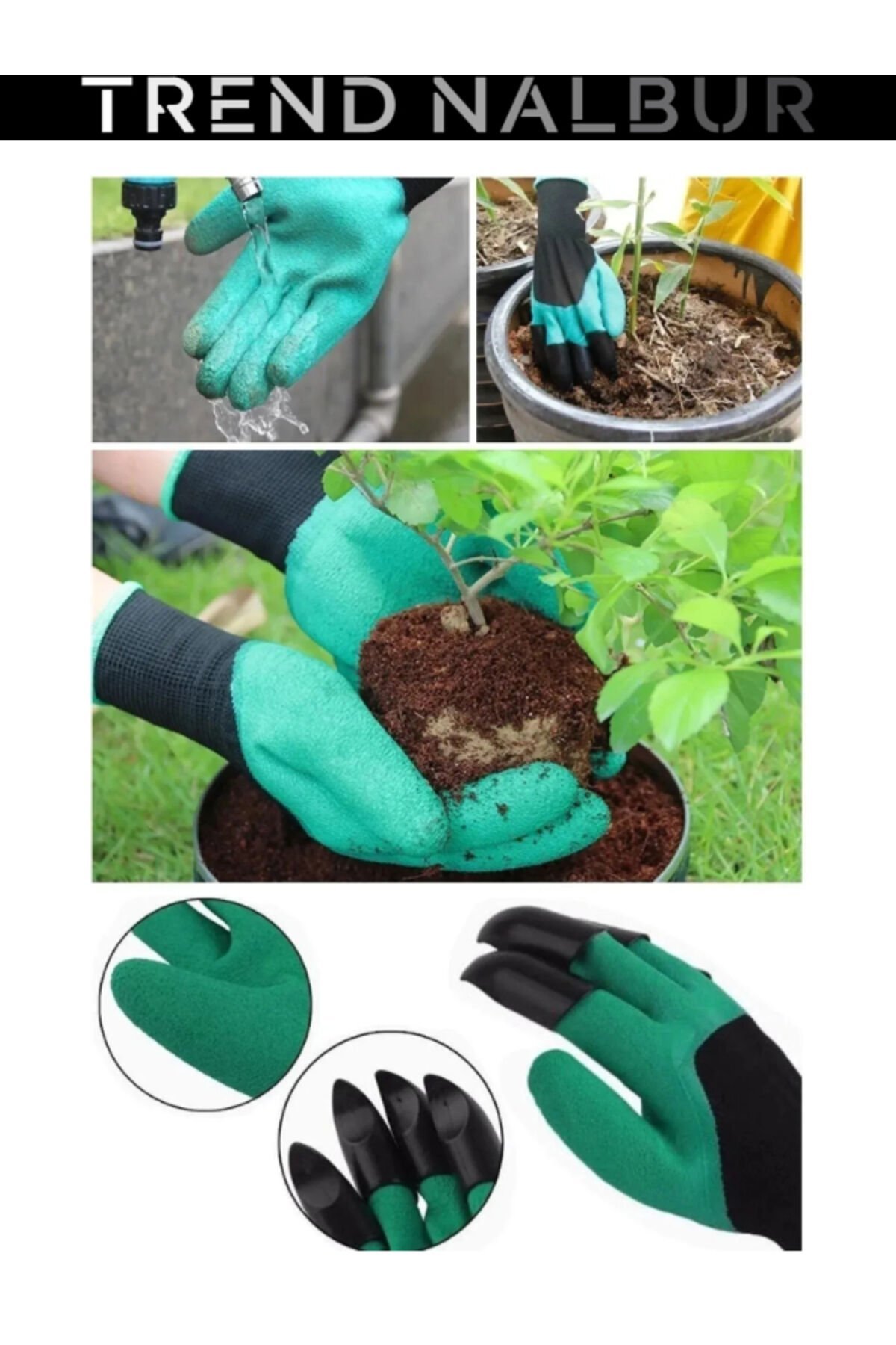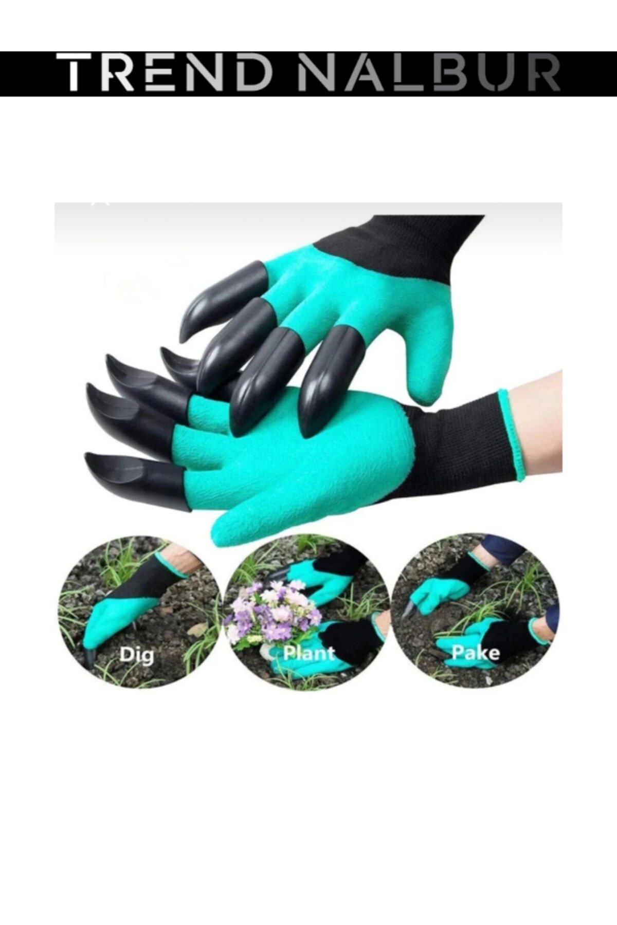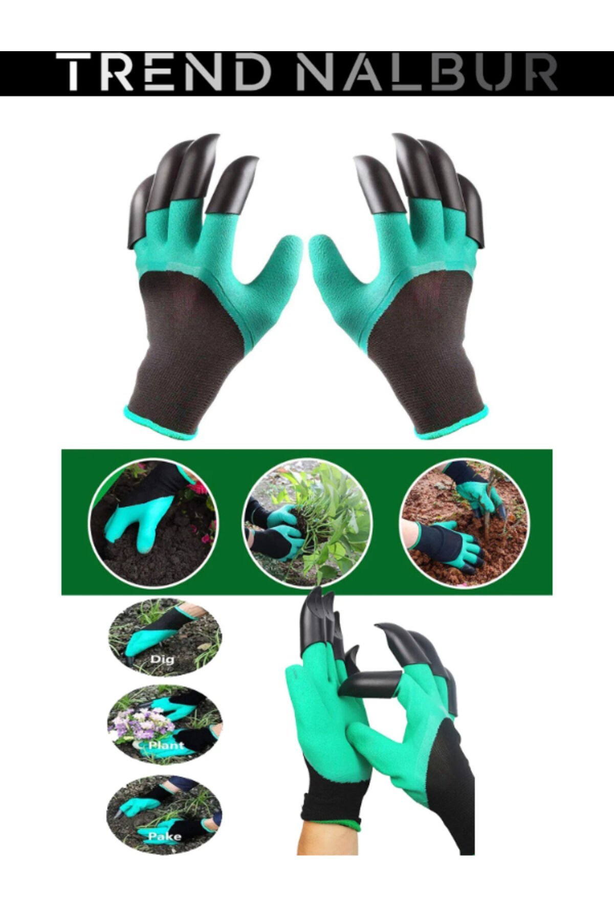 Kazma Bahçe Eldiveni - Sert Plastik Tırnaklı Eldiven Toprak Kazma Ekme Çapalama Için Korumalı Bahçe