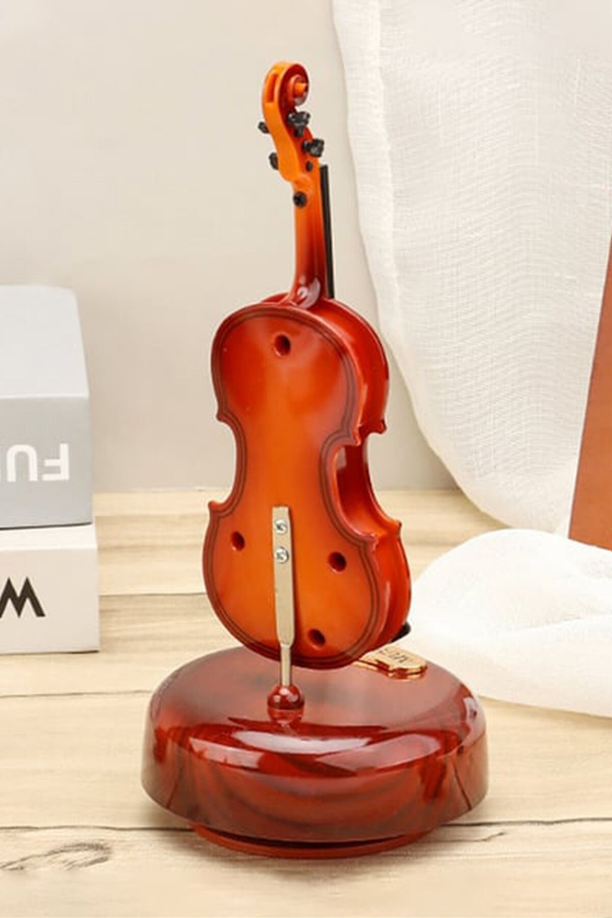 - Bakıldığında sadece keman biblosu olarak görünen keman tasarımlı müzik kutusu kurduğunuzda hareket etmeye başlar ve kendi kendini çalarak müzik çalar.