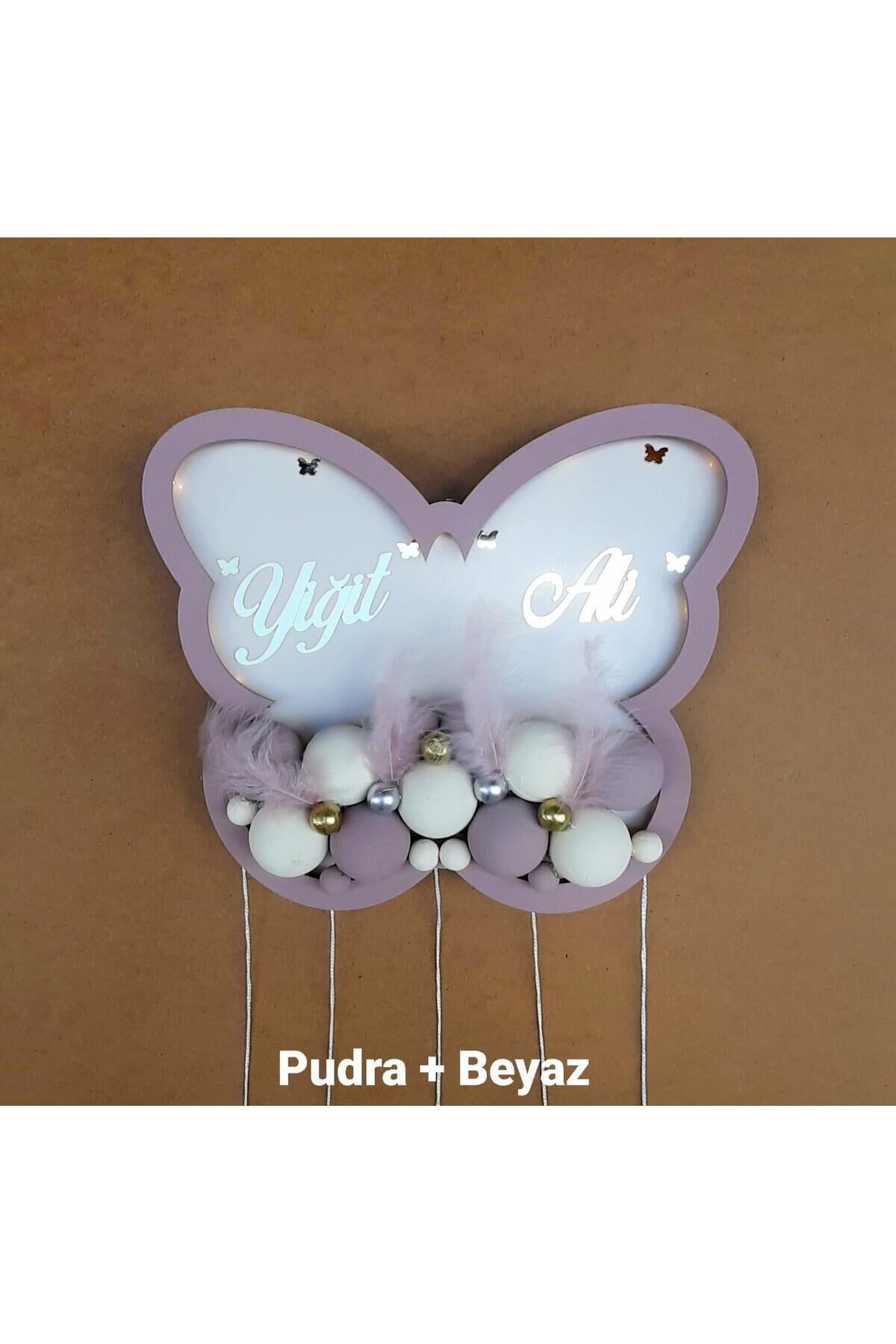Kişiye Özel İsim Yazılı El Işi Led Işıklı Kelebek Tasarımlı Bebek Odası Hastane Ev Kapı Süsü