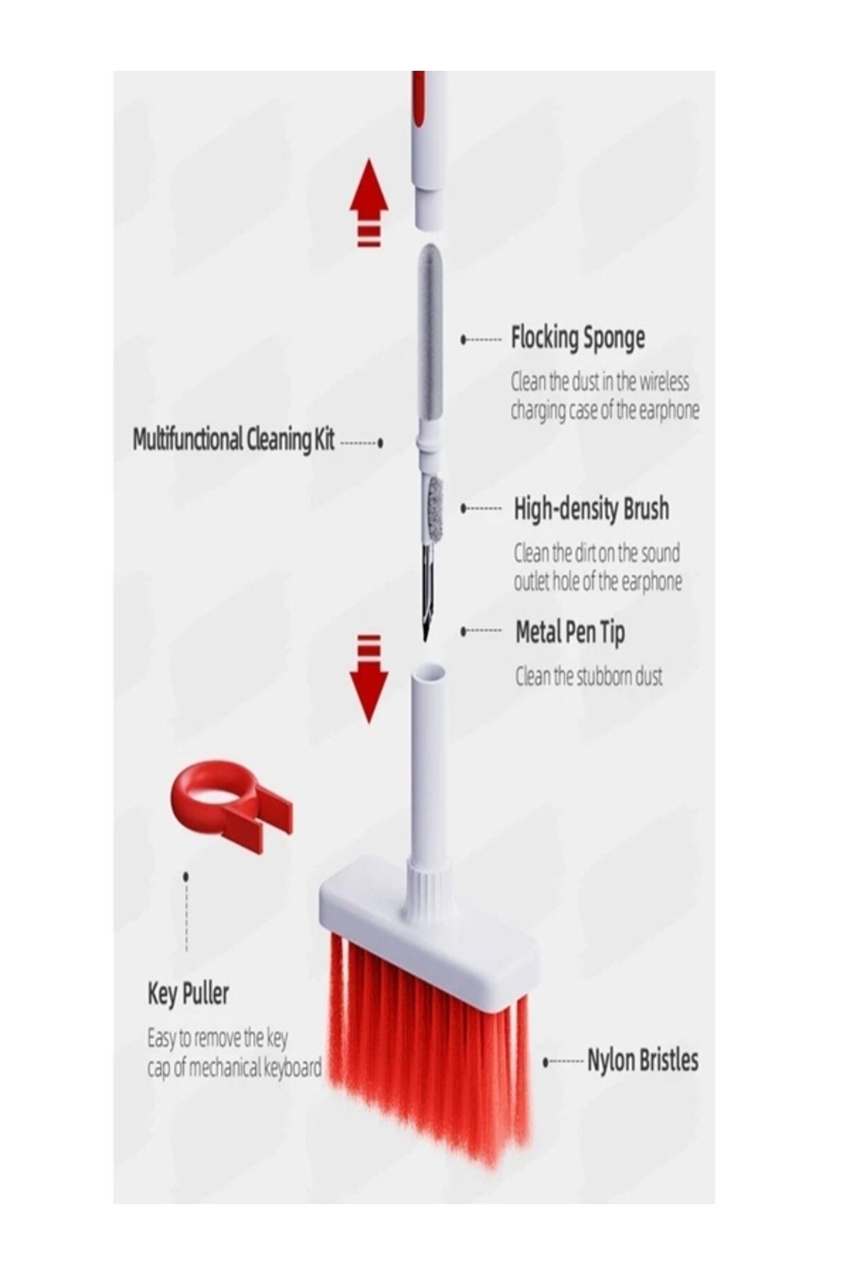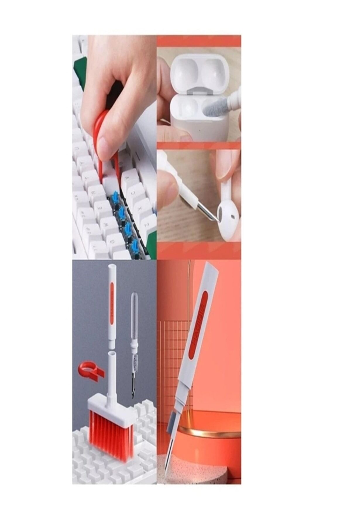 KLAVYE VE KULAKLIK TEMİZLEYİCİ KİT 5 in 1 Klavye ve Kulaklık Temizleyici Kit ile bilgisayar klavyelerinizin tuşlarınızın arasındaki çıkması güç olan toz ve lekeleri kolaylıkla temizleyebilir ve klavye tuş takımlarınızın altını da aynı şekilde kolaylıkla temizleyebilir ve ulaşılması güç alanlara kolaylıkla ulaşabilirsiniz. ; 5 in 1 kit ile airpodslarınızı ve kablolu kulak içi kulaklıklarınızı da tertemiz yapabilirsiniz. ; Bilgisayar çantanızın içinde mutlaka bulunması gereken yer kaplamayan multifonksiyonel bir kit. ; Paket İçeriği 1 adet klavye ve kulaklık temizleyici kit;