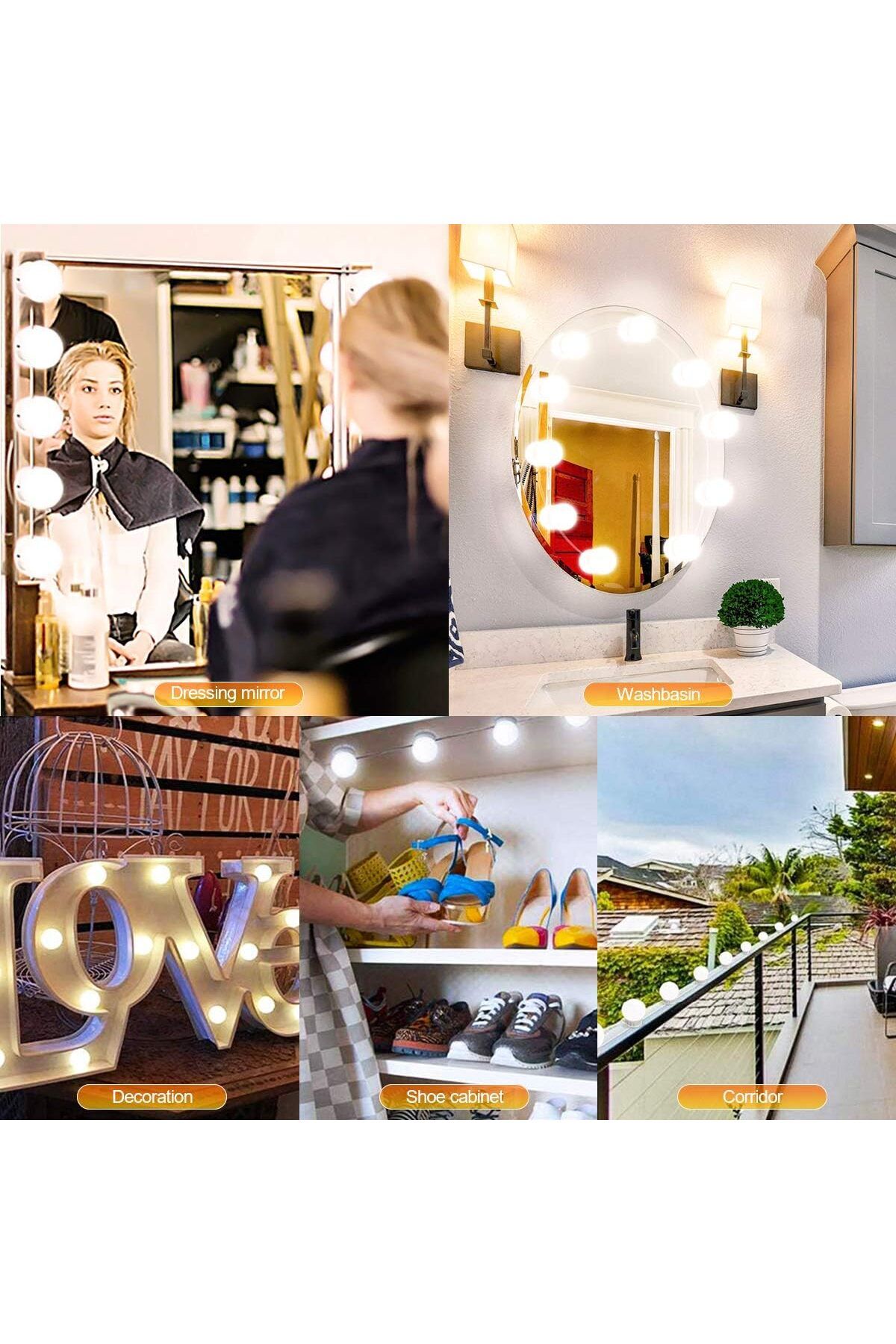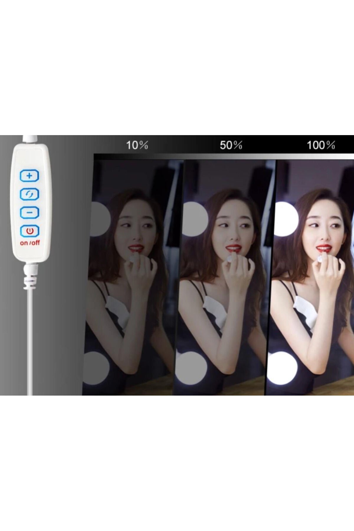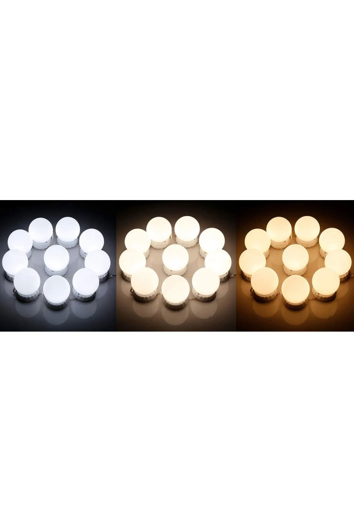 Üç renk parlaklık ayarı + Ayarlanabilir ışık derecesi: Üç renk led ışık ve ayarlanabilir parlaklık seviyesi, Sarı ışık, Beyaz ışık, Gün ışığı ışık renkleri mevcuttur.; Kumanda ile 3 farklı ışık rengi değiştirme Ampul sayısı: 10 / Ampul Çapı: 4,5 cm / Kablo Uzunluğu: 4,7m / Aralığı ayarlayın: 30cm Işık Kaynağı: LED / Renk Sıcaklığı: 3000-7000K / Maksimum Güç: 12W Çalışma Gerilimi: 5V/2A / Fiş Tipi: USB Paket içeriği: 10 adet Makyaj Aynası Ledleri 10 adet yapışkanlı bant