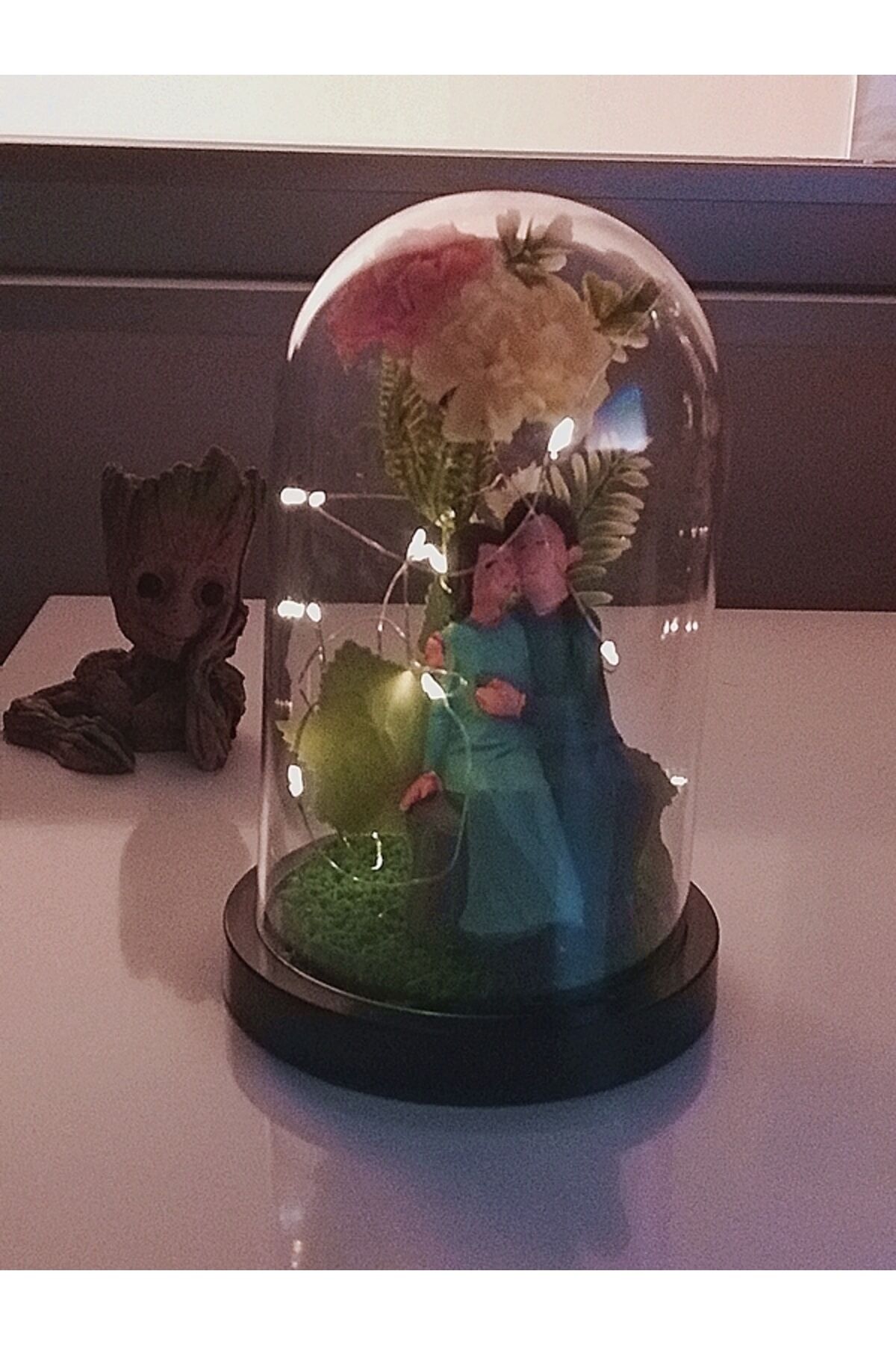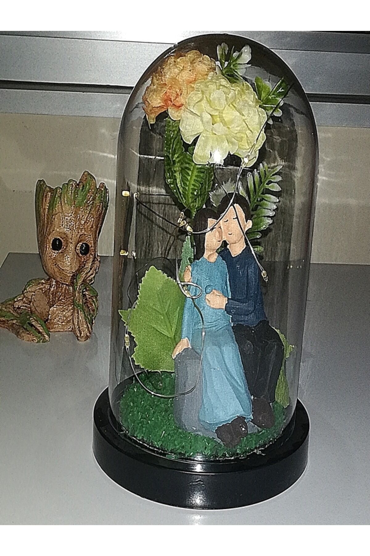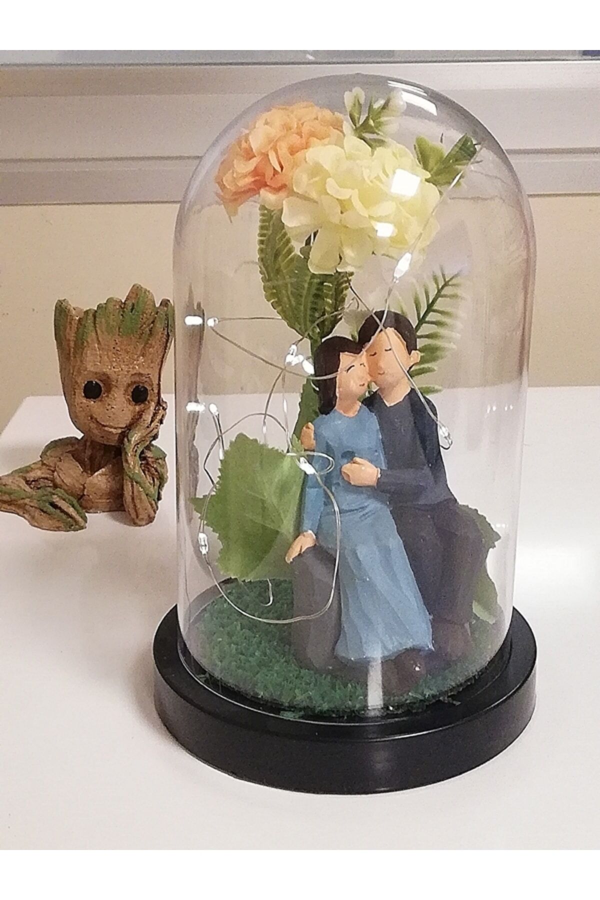 Led Işıklı Fanus Kütükte Oturan Çift Karanfil Sevdiklerinize Sevgilinize Eşinize Hediye