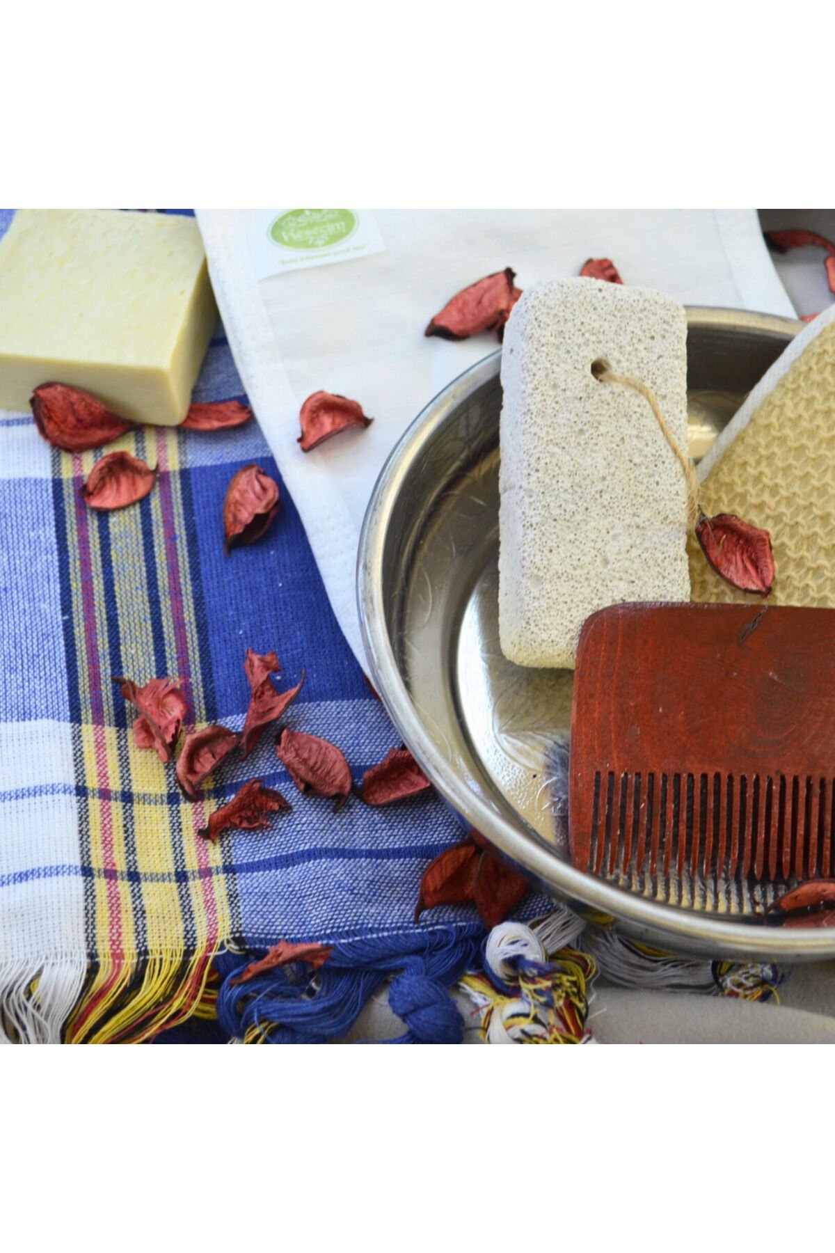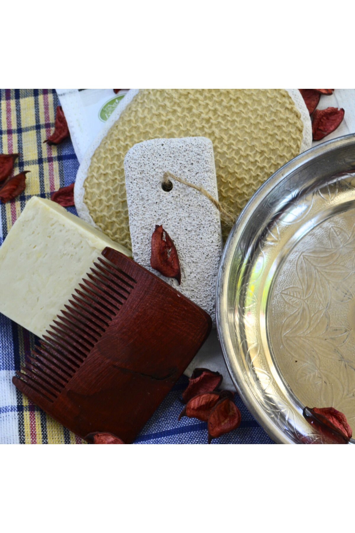 Lüks Hamam Seti: Hamamın En İyisi Evde! Hamamın eşsiz atmosferini evinize getirin ve lüksün, rahatlığın ve geleneksel Türk hamamının tadını çıkarın. ; Bu özel lüks hamam seti, hem kadınlar hem de erkekler için tasarlanmış olup, içeriğinde bulunan özenle seçilmiş ürünlerle size sadece bir hamam deneyimi değil, aynı zamanda konfor ve şıklık sunar. ; Set İçeriği: Tarak:Doğal ahşap malzemeden elde işlenmiş olan bu tarak, saç bakımınızı ve saç taramanızı kolaylaştırır. ; Uzun saçlı kadınlardan kısa saçlı erkeklere kadar herkes için mükemmeldir. ; Tas:Özel tasarlanmış lüks bir tas, hamamda veya evde suyla serinlemek için kullanabilirsiniz. ; Tasımız, geleneksel tasların zarafetini modern bir dokunuşla birleştirir. ; Peştemal:180x70 cm boyutlarındaki bu özel tasarım peştemal, yumuşak ve hafif dokusuyla rahatlığı doruklarda yaşatır. ; Lüks görünümü ve dokusuyla sizi büyüleyecek. ; Kese:Doğal pamuk ipliklerinden üretilen bu kese, cildinizi nazikçe temizler ve ölü deriyi arındırır. ; Cildinizi canlandırır ve yeniler. ; Sabun:Doğal ve el yapımı sabun, cildinizi temizlerken nemlendirir ve ferah bir his bırakır. ; Hamam deneyiminizi tamamlar. ; Ayak Topuk Taşı:Özel olarak tasarlanmış doğal volkanik taştan üretilen ayak topuk taşı, ayak tabanlarınıza ve topuklarınıza rahatlatıcı bir masaj yapar. ; Ayaklarınızın günün yorgunluğunu atmasına yardımcı olur. ; Bu özel lüks hamam seti, hamamın geleneksel rahatlatıcı atmosferini evinize getiriyor ve size birinci sınıf bir deneyim sunuyor. ; Kendiniz veya sevdikleriniz için mükemmel bir hediye seçeneği olan bu set ile lüks ve konforun keyfini çıkarabilirsiniz. ; Neden Biz? Yüksek Kalite: Ürünlerimiz en yüksek kaliteli malzemelerden üretilir ve uzun ömürlüdür. ; Geleneksel Deneyim: Geleneksel Türk hamamı deneyimini evinize getirin. ; Hem Kadınlar Hem de Erkekler İçin: Setimiz hem kadınlar hem de erkekler için uygundur. ; El Yapımı Sabun: Doğal ve el yapımı sabun cildinizi nazikçe temizler. ; Hamam deneyiminizi daha da özel ve lüks hale getirin. ; Şimdi sipariş verin ve geleneksel hamam deneyiminin keyfini çıkarın!;