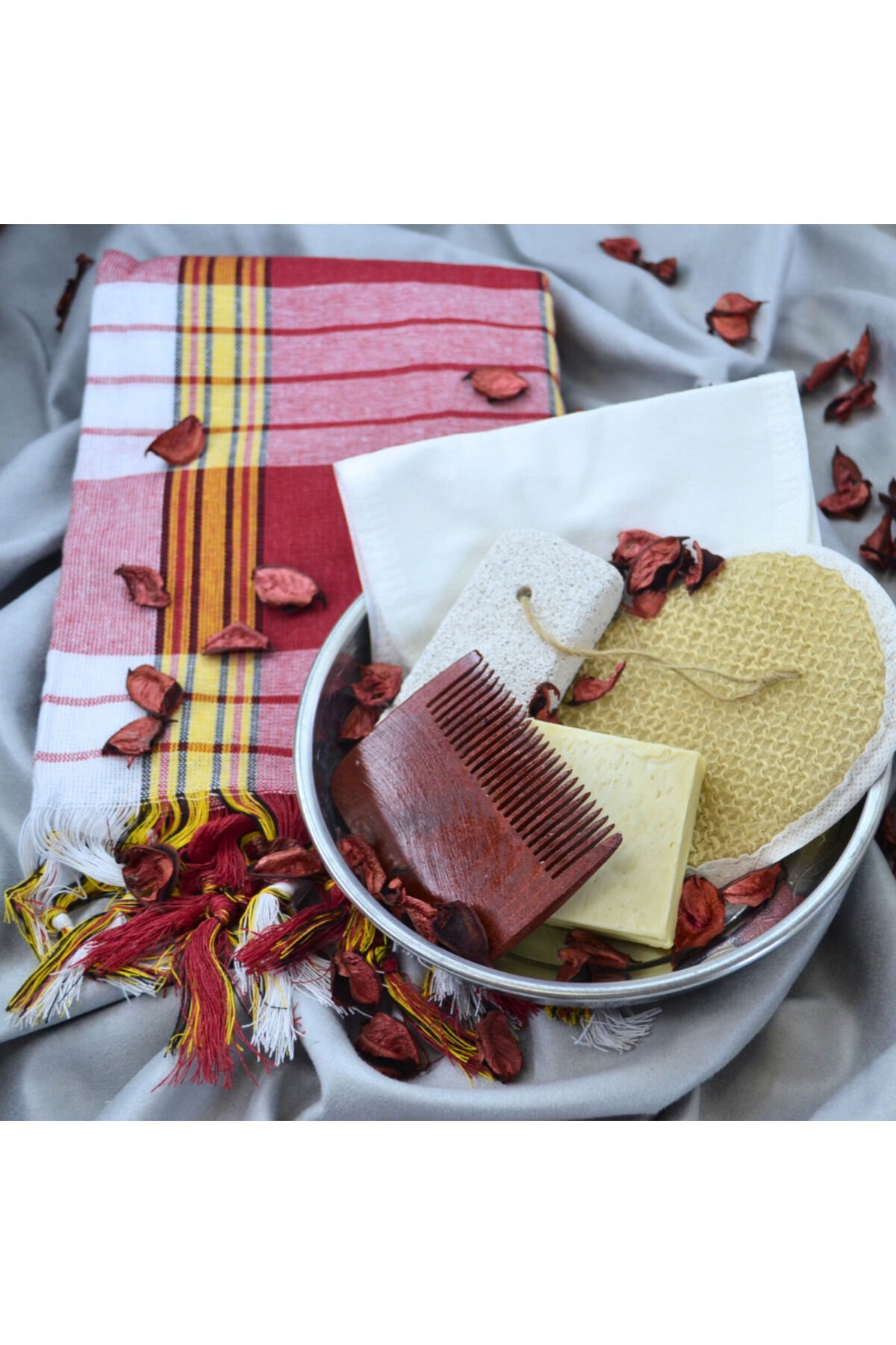 Lüks Hamam Seti: Hamamın En İyisi Evde! Hamamın eşsiz atmosferini evinize getirin ve lüksün, rahatlığın ve geleneksel Türk hamamının tadını çıkarın. ; Bu özel lüks hamam seti, hem kadınlar hem de erkekler için tasarlanmış olup, içeriğinde bulunan özenle seçilmiş ürünlerle size sadece bir hamam deneyimi değil, aynı zamanda konfor ve şıklık sunar. ; Set İçeriği: Tarak:Doğal ahşap malzemeden elde işlenmiş olan bu tarak, saç bakımınızı ve saç taramanızı kolaylaştırır. ; Uzun saçlı kadınlardan kısa saçlı erkeklere kadar herkes için mükemmeldir. ; Tas:Özel tasarlanmış lüks bir tas, hamamda veya evde suyla serinlemek için kullanabilirsiniz. ; Tasımız, geleneksel tasların zarafetini modern bir dokunuşla birleştirir. ; Peştemal:180x70 cm boyutlarındaki bu özel tasarım peştemal, yumuşak ve hafif dokusuyla rahatlığı doruklarda yaşatır. ; Lüks görünümü ve dokusuyla sizi büyüleyecek. ; Kese:Doğal pamuk ipliklerinden üretilen bu kese, cildinizi nazikçe temizler ve ölü deriyi arındırır. ; Cildinizi canlandırır ve yeniler. ; Sabun:Doğal ve el yapımı sabun, cildinizi temizlerken nemlendirir ve ferah bir his bırakır. ; Hamam deneyiminizi tamamlar. ; Ayak Topuk Taşı:Özel olarak tasarlanmış doğal volkanik taştan üretilen ayak topuk taşı, ayak tabanlarınıza ve topuklarınıza rahatlatıcı bir masaj yapar. ; Ayaklarınızın günün yorgunluğunu atmasına yardımcı olur. ; Bu özel lüks hamam seti, hamamın geleneksel rahatlatıcı atmosferini evinize getiriyor ve size birinci sınıf bir deneyim sunuyor. ; Kendiniz veya sevdikleriniz için mükemmel bir hediye seçeneği olan bu set ile lüks ve konforun keyfini çıkarabilirsiniz. ; Neden Biz? Yüksek Kalite: Ürünlerimiz en yüksek kaliteli malzemelerden üretilir ve uzun ömürlüdür. ; Geleneksel Deneyim: Geleneksel Türk hamamı deneyimini evinize getirin. ; Hem Kadınlar Hem de Erkekler İçin: Setimiz hem kadınlar hem de erkekler için uygundur. ; El Yapımı Sabun: Doğal ve el yapımı sabun cildinizi nazikçe temizler. ; Hamam deneyiminizi daha da özel ve lüks hale getirin. ; Şimdi sipariş verin ve geleneksel hamam deneyiminin keyfini çıkarın!;