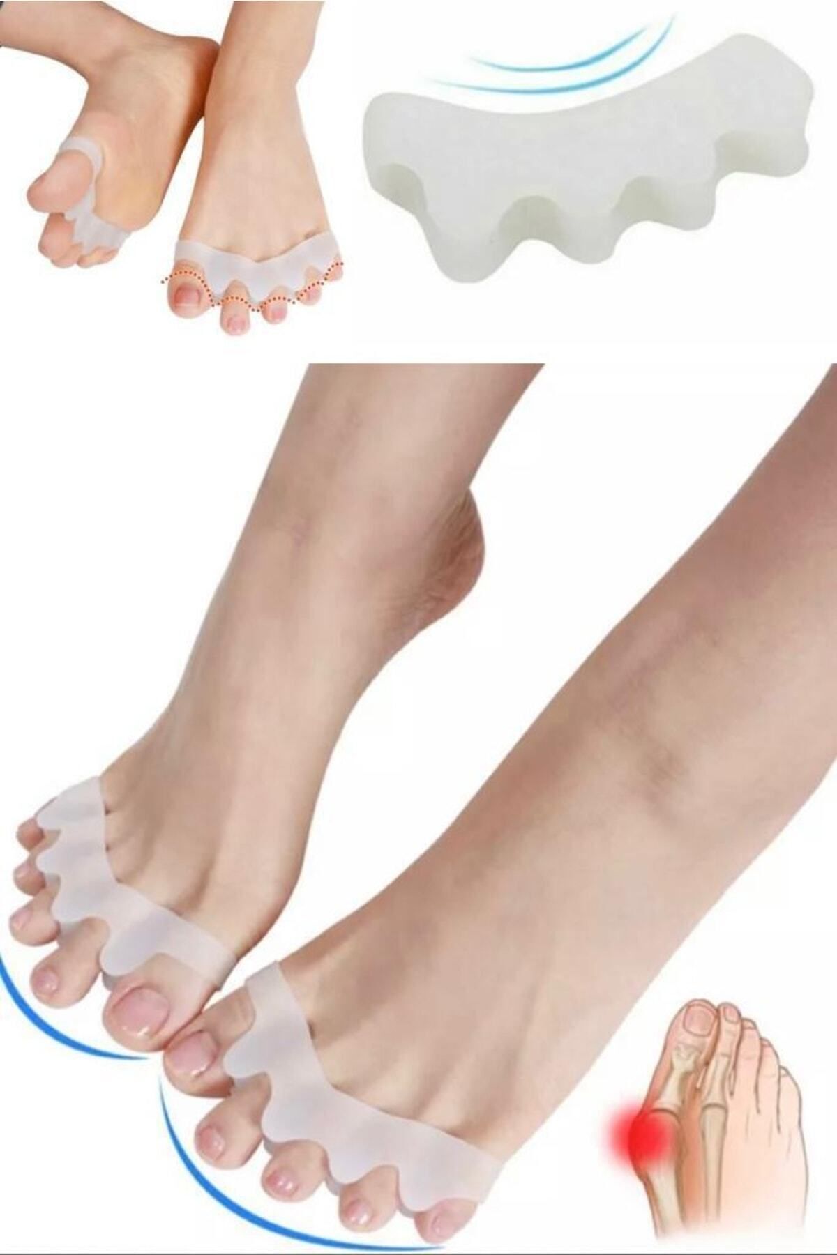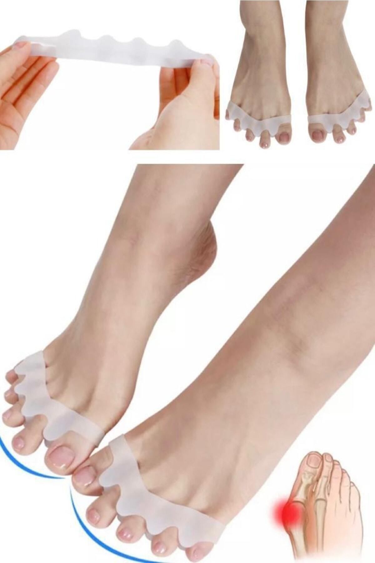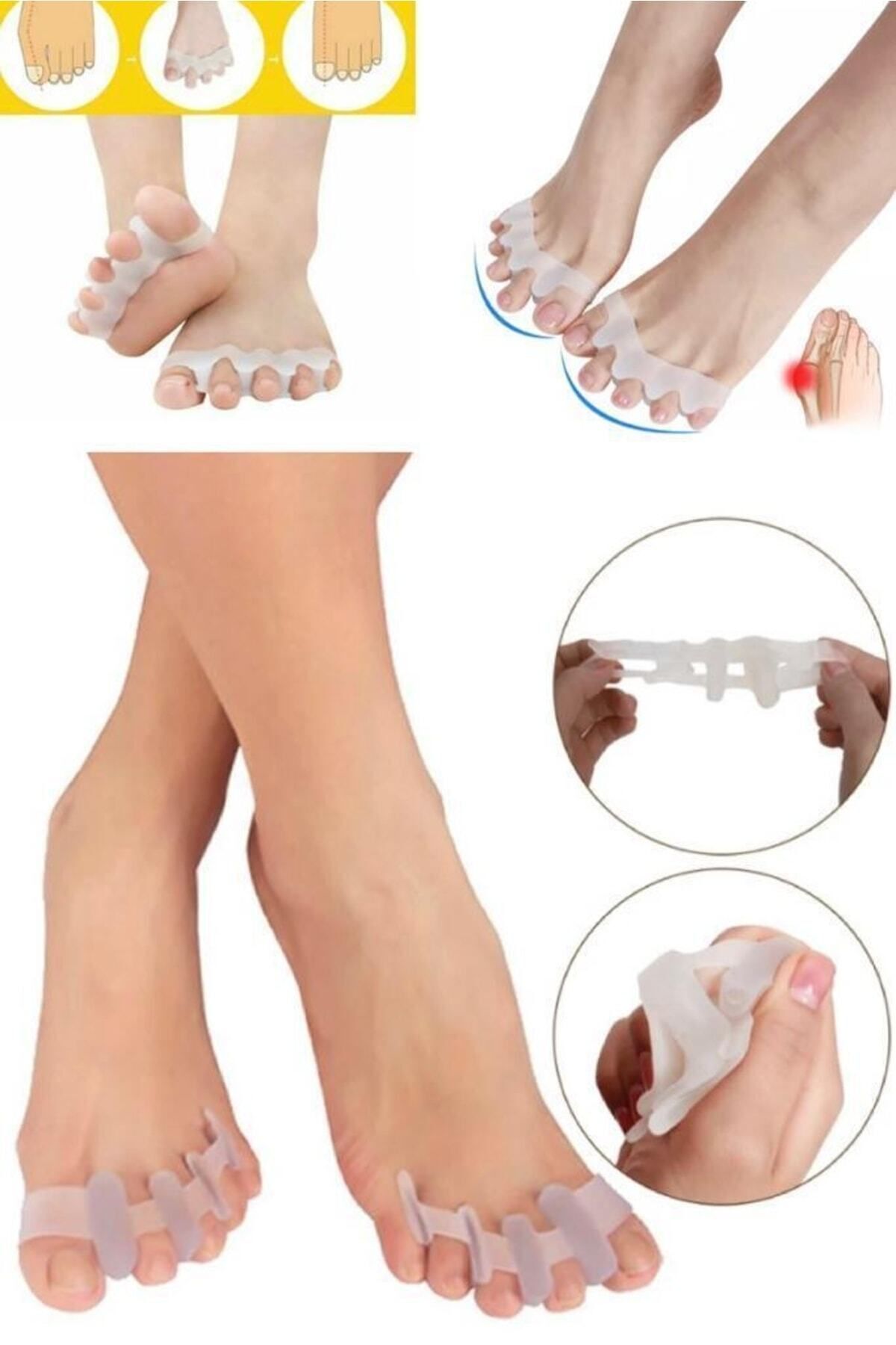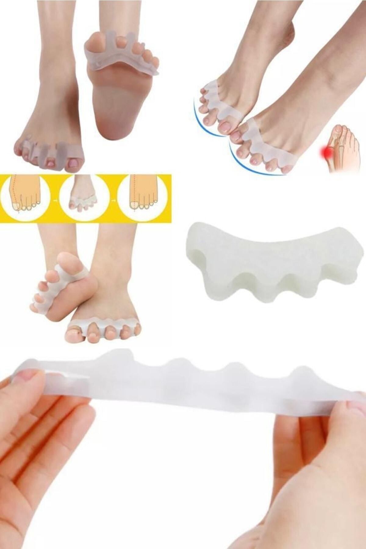 Ayak bakım araçları hizalama ayak parmakları hafifletici ağrı düzeltici silikon ayak parmağı ayırıcı. ; Ayakkabı ve çorapla kolayca kullanabilirsiniz. ; Ayak parmaklarınızı korur.Düzenli kullanımda ayak parmağınızdaki sorunlardan kolayca kurtulmanızı sağlar. ; Ayağınızdaki şekil bozukluklarını düzeltmekle beraber, kemik büyümesini engeller, iyileşmesine yardımcı olur. ; Ürün Paket İçeriği 1 Adet Ayak Parmak Ayırıcı.Ayak 5 Parmak Ayıran Silikon Bunyon Makara Halluks Valgus Ayak sağlığınızı korumanıza yardımcı olacak bunyon koruyucu! Ayağınızdaki hallux valgus deformesi olarak bilinen kemik büyümesini önleyecek ve aynı zamanda parmaklarınızdaki şekil bozukluklarının iyileşmesine yardımcı olacak koruyucudur. ; Ayak başparmağınızla birlikte diğer parmağınızı da saracak olan koruyucu iki parmak arasındaki makarası ile iki parmağın da şeklinin düzelmesine yardımcı olacaktır. ; Düzenli kullanımda yaşadığınız sorunlardan kurtulmanıza yardımcı olacaktır. ; *** Yatarken veya otururken kullanılmalıdır.***;