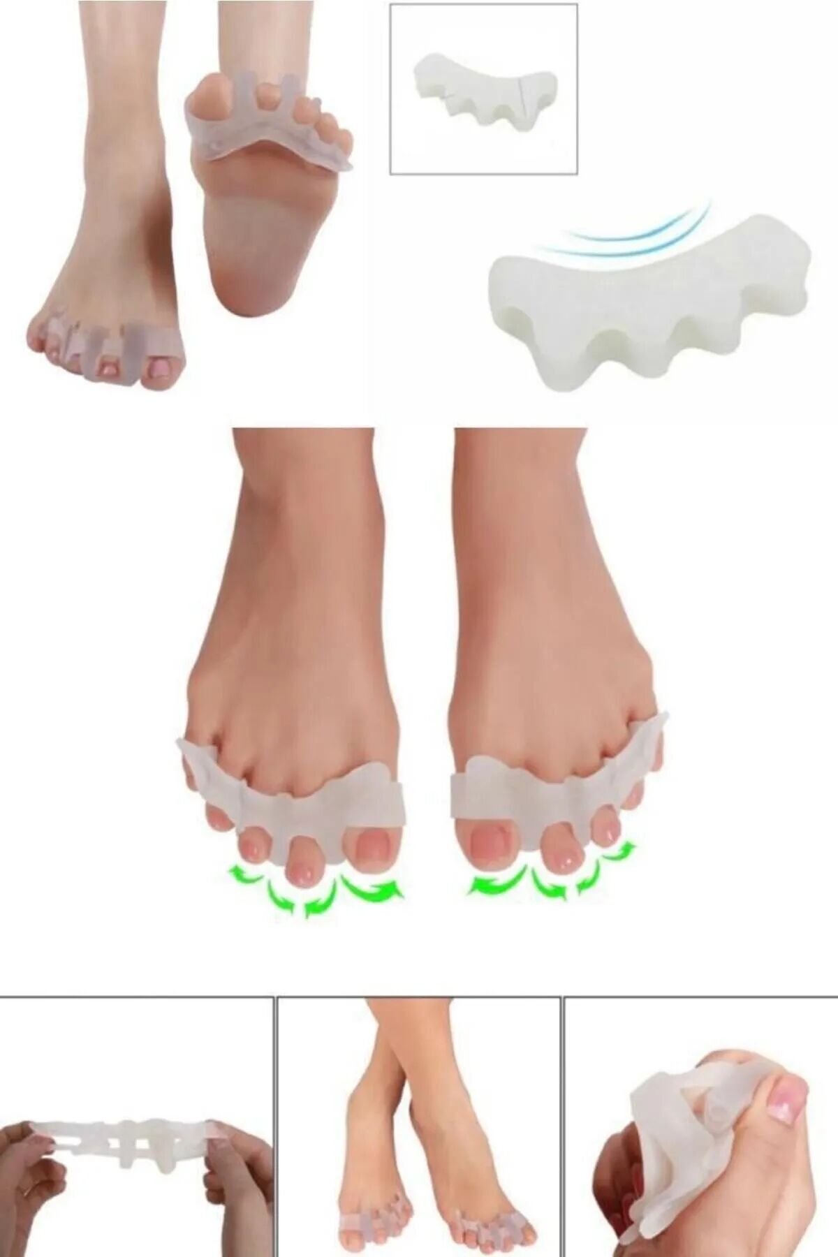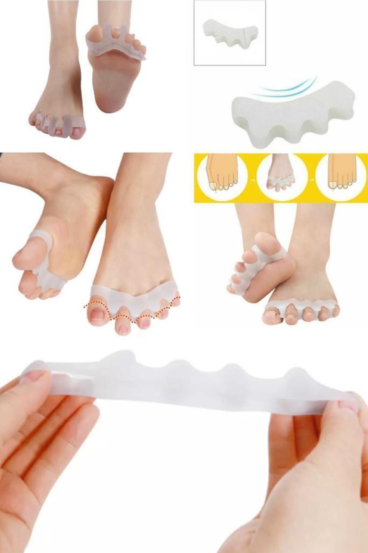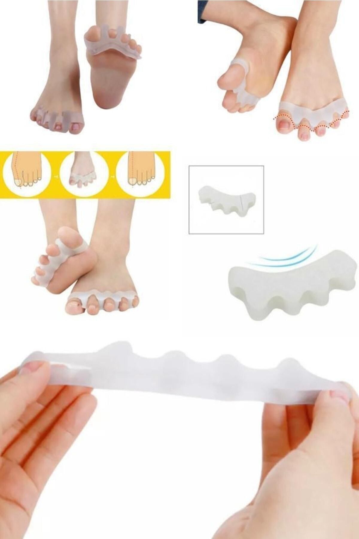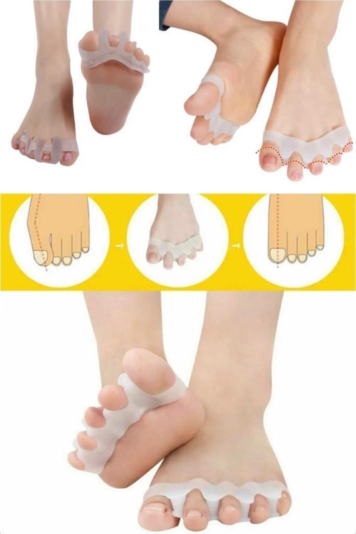 Ayak bakım araçları hizalama ayak parmakları hafifletici ağrı düzeltici silikon ayak parmağı ayırıcı. ; Ayakkabı ve çorapla kolayca kullanabilirsiniz. ; Ayak parmaklarınızı korur.Düzenli kullanımda ayak parmağınızdaki sorunlardan kolayca kurtulmanızı sağlar. ; Ayağınızdaki şekil bozukluklarını düzeltmekle beraber, kemik büyümesini engeller, iyileşmesine yardımcı olur. ; Ürün Paket İçeriği 1 Adet Ayak Parmak Ayırıcı.Ayak 5 Parmak Ayıran Silikon Bunyon Makara Halluks Valgus Ayak sağlığınızı korumanıza yardımcı olacak bunyon koruyucu! Ayağınızdaki hallux valgus deformesi olarak bilinen kemik büyümesini önleyecek ve aynı zamanda parmaklarınızdaki şekil bozukluklarının iyileşmesine yardımcı olacak koruyucudur. ; Ayak başparmağınızla birlikte diğer parmağınızı da saracak olan koruyucu iki parmak arasındaki makarası ile iki parmağın da şeklinin düzelmesine yardımcı olacaktır. ; Düzenli kullanımda yaşadığınız sorunlardan kurtulmanıza yardımcı olacaktır. ; *** Yatarken veya otururken kullanılmalıdır.***;