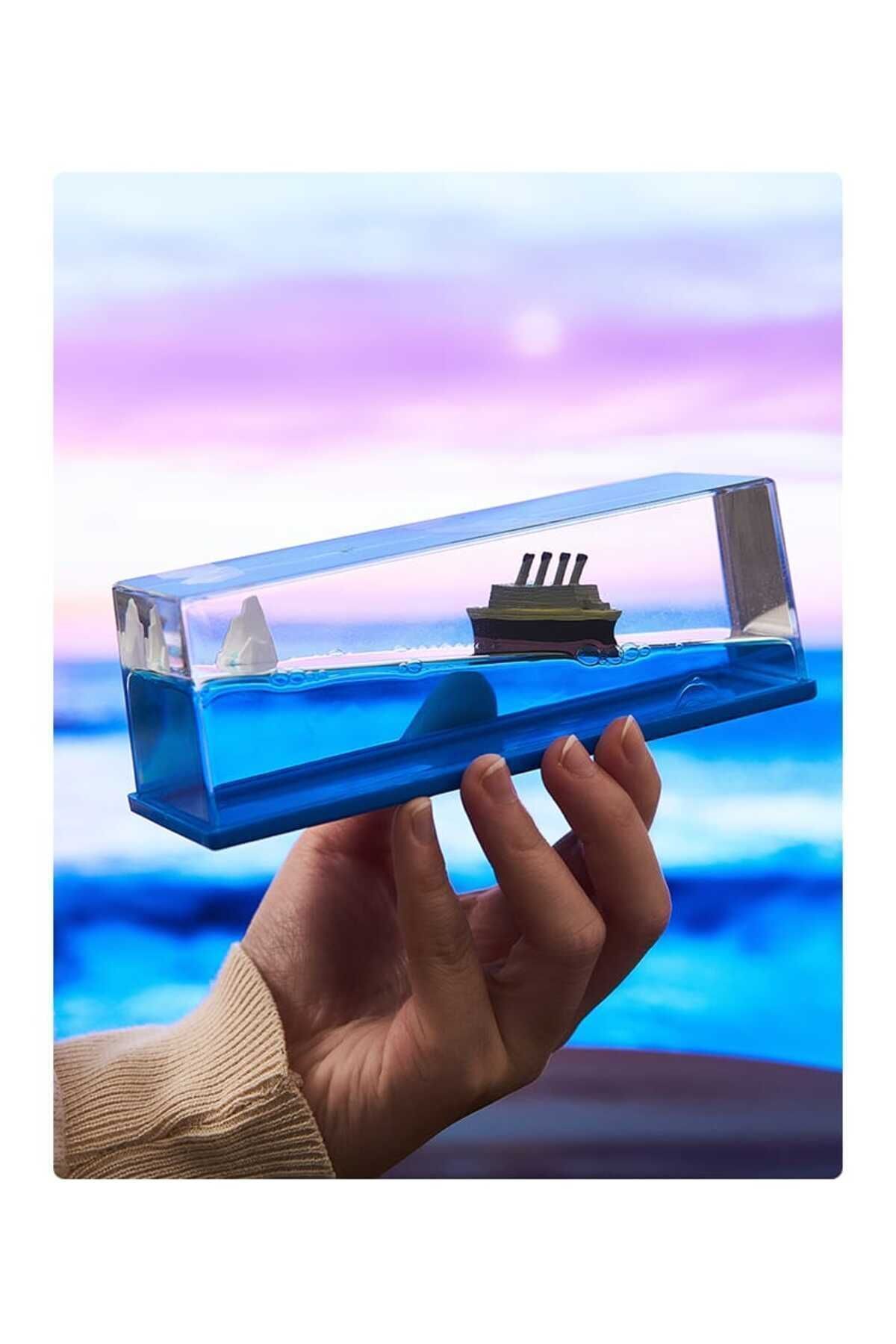 Mavi Su Akvaryum Şişe Şeklinde Batmayan Titanik Gemi