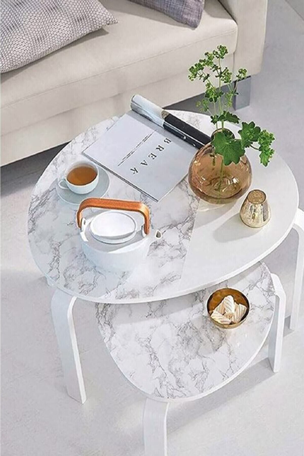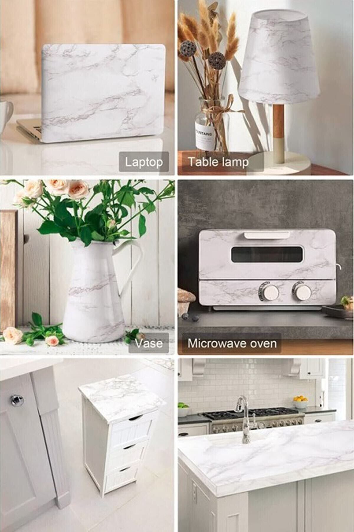 Mermer Desenli Beyaz Folyo Kaplama 5 Metre Tezgah Dolap Mutfak Kağıdı Yapışkanlı