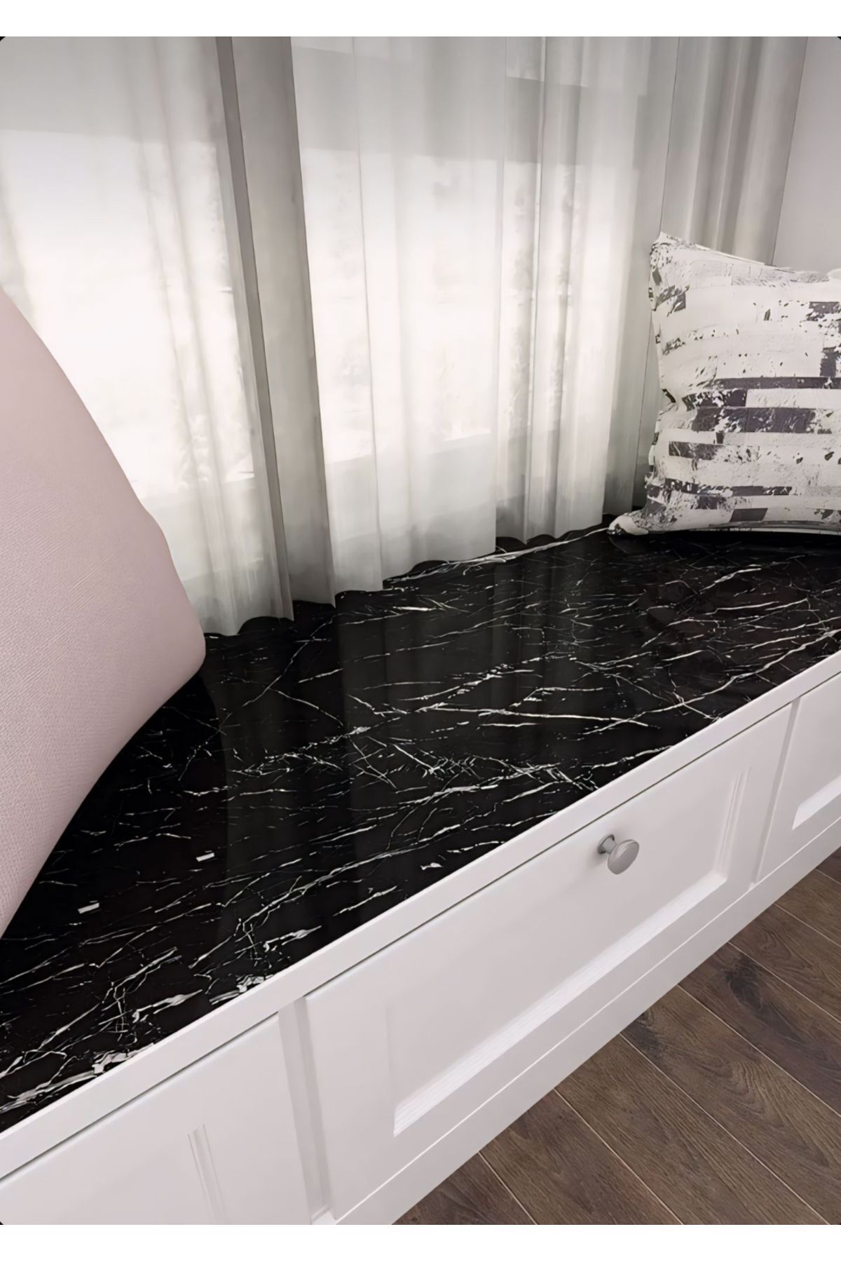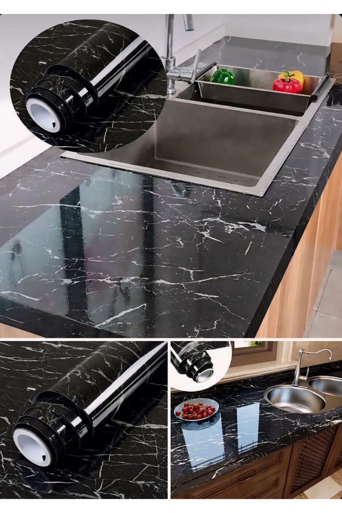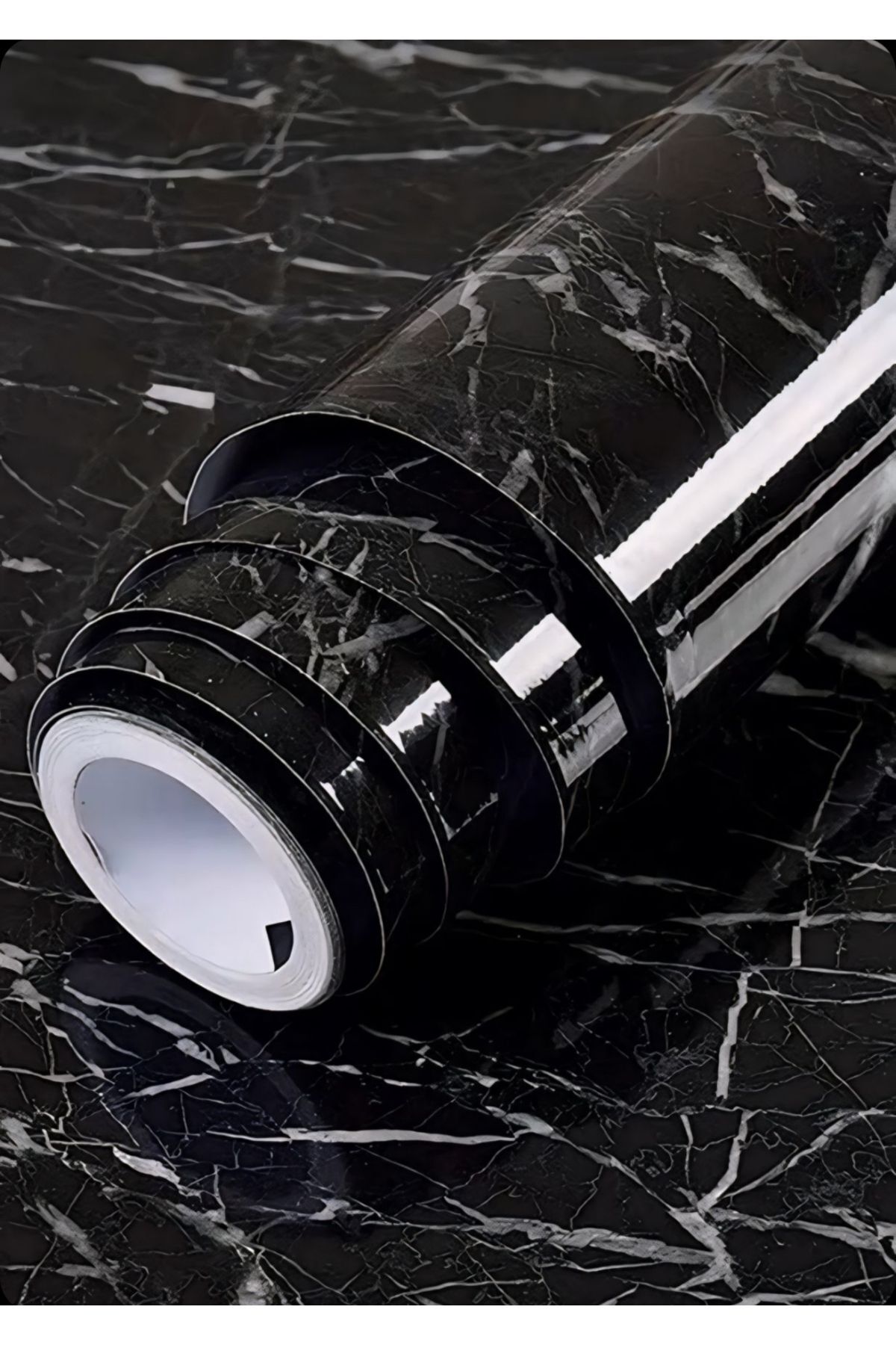 Mermer Desenli Siyah Folyo Kaplama 5 Metre Tezgah Dolap Mutfak Kağıdı Yapışkanlı 5m X 60 Cm