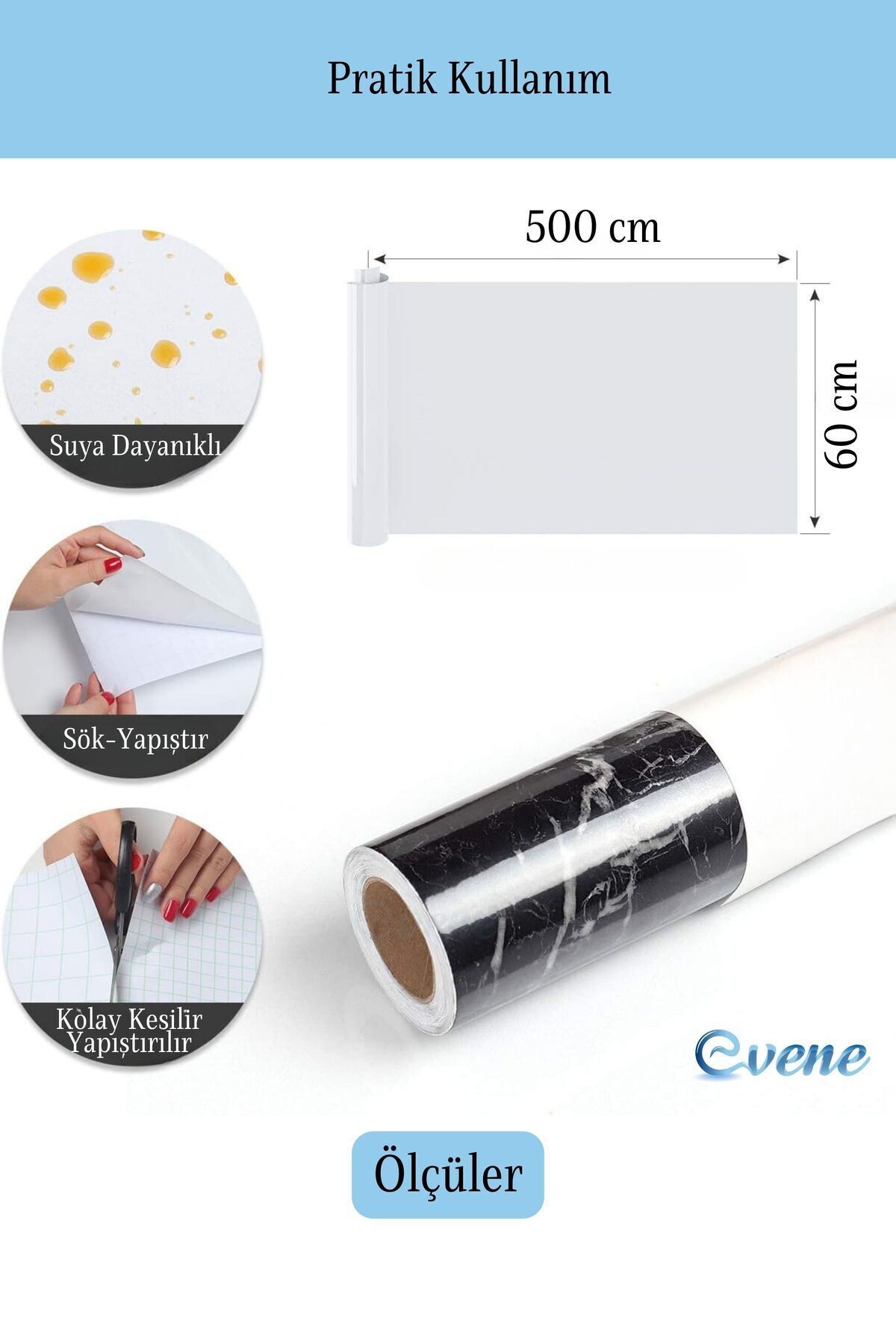 Kendinden Yapışkanlı Mermer Desenli Folyo - **ÜRÜN BOYUTU:** Mermer Desenli Folyo, 60 cm genişlik ve 5 metre uzunlukta olup, geniş kapsamlı kaplama sağlar.; PVC malzemeden üretilmiştir, bu sayede tek kişi bile kolayca dekorasyonu tamamlayabilir.; Sadece soyun ve yapıştırın.; **KENDİNDEN YAPIŞKANLI & KOLAY SÖKÜLEBİLİR:** Bu folyo kolayca temizlenebilir ve çıkarılabilir.; Su geçirmez ve yağ geçirmez özellikleri ile lekelerin yapışmasını engeller.; Dayanıklı ve solmaya karşı dirençlidir.; Temizlik için nemli bir bezle silmeniz yeterlidir.; **KOLAY KULLANIM:** Mermer Desenli Folyo, hızlı ve kolay kurulum sağlar.; İstediğiniz boyutta kesip, soyun ve yapıştırın.; Kabarcıklar oluşursa, bir iğne ile delin ve içindeki havayı çıkarın.; **ÇOK AMAÇLI KULLANIM:** Mutfak dolapları, tezgahlar, defterler hatta duvarlar gibi pürüzsüz yüzeylerde kullanıma uygundur.; Folyonun düz kalmasını sağlamak için kuru bir bezle üzerine bastırın.; **KALİTE GARANTİSİ:** Mermer Desenli Folyo, premium ambalajlama ile gelir.; İçerisinde çekirdek tüp bulunmaktadır, böylece kırışıklıklar ve katlanmalar engellenir.;