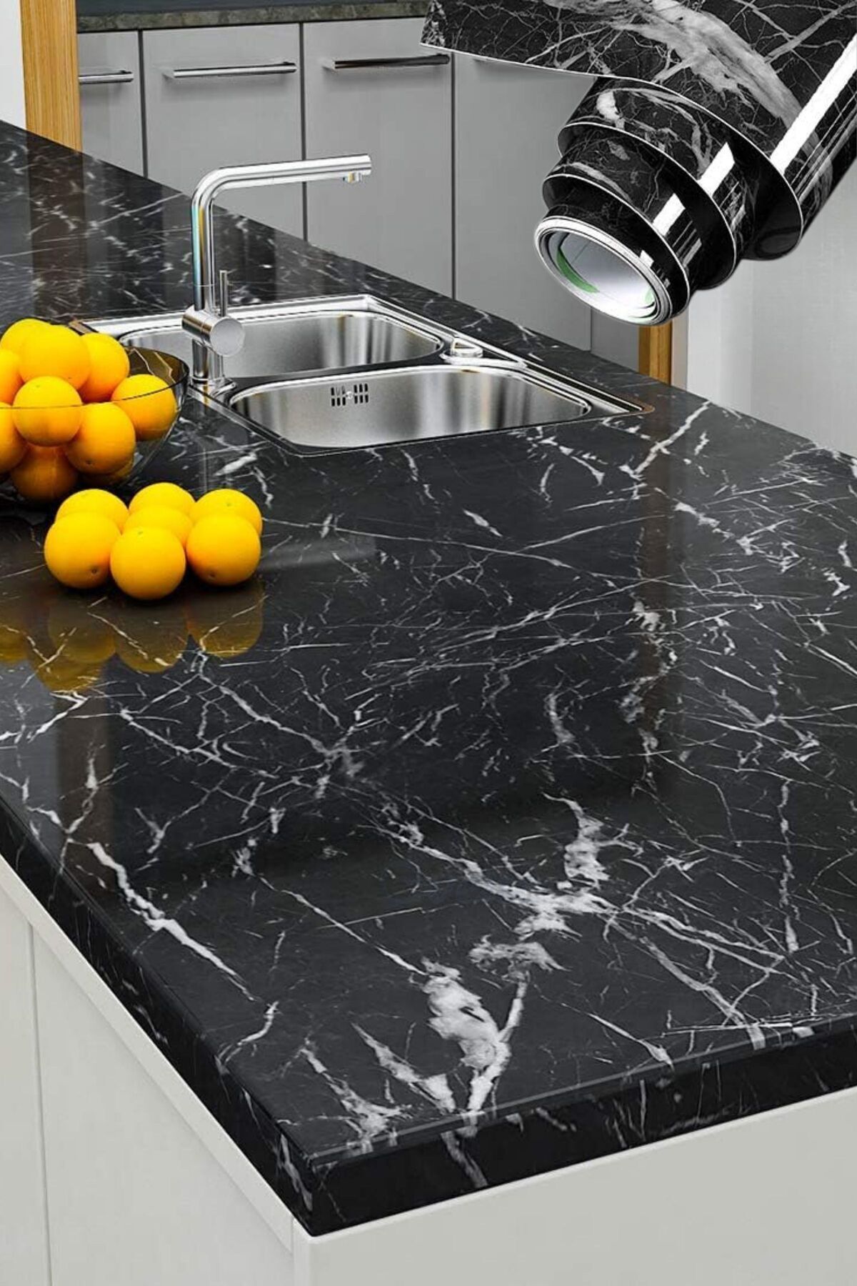 Mermer Desenli Yapışkanlı Kaplama - Mutfak, Banyo, Tezgah, Duvar ve Masa İçin 5 Metre