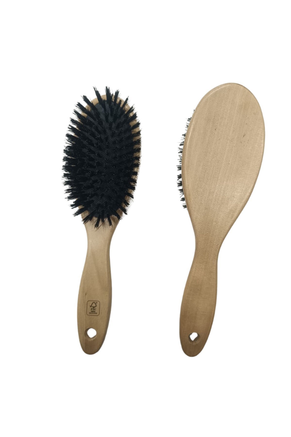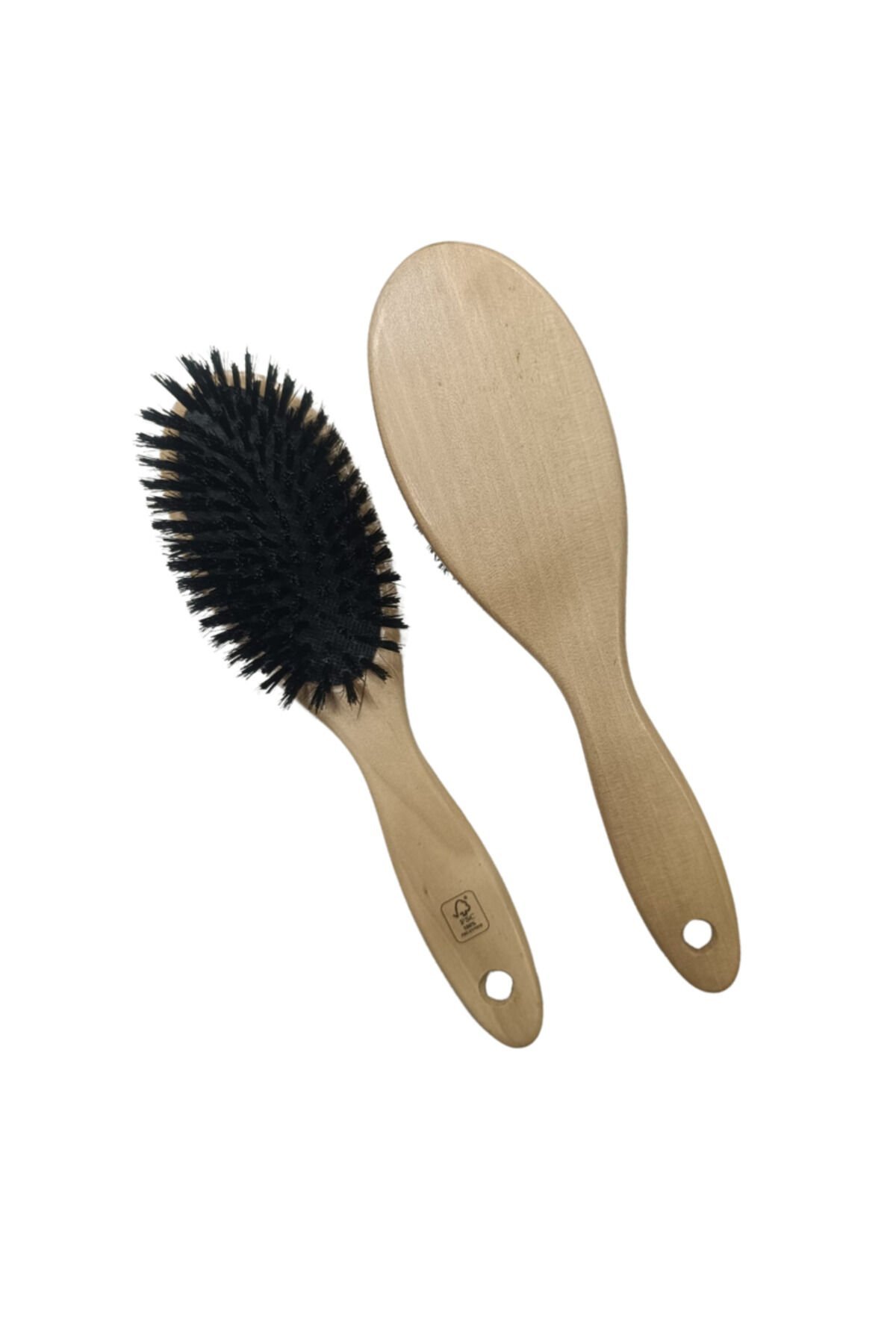 Doğal ahşap sapı ile şık ve dayanıklı bir kullanım sunar; Orta sert kılları sayesinde, ıslak ve kuru saçları nazikçe tarayarak şekillendirme kolaylığı sağlar; Saç açıcı özelliği ile saçları açmadan önce veya sonra kullanıma uygundur, böylece saç bakım rutininizi pratikleştirir; Fırça tipi tasarımı, geniş yüzey alanı sayesinde hızlı ve eşit bir tarak deneyimi sunar;