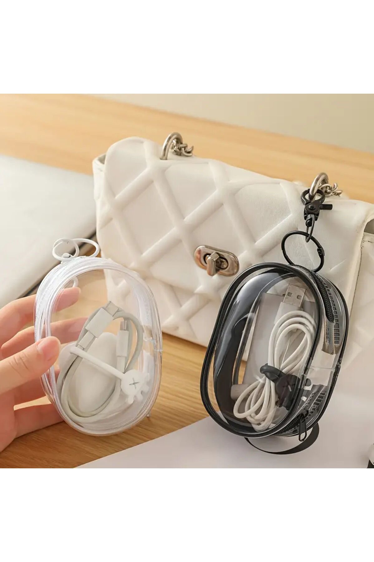 Mini Kulaklık, Şarj Cihazı Taşıma, Emzik Saklama Taşıma Çantası. Mini Bozuk Para Cüzdanı Siyah