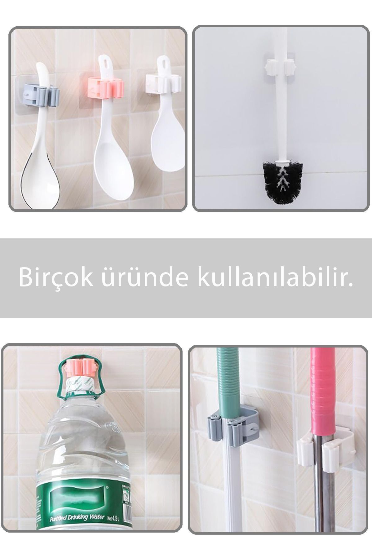Mop Sapı Tutucu Yapışkanlı Temizlik Paspas Fırça Süpürge Asma Aparatı Banyo Mutfak Düzenleyici