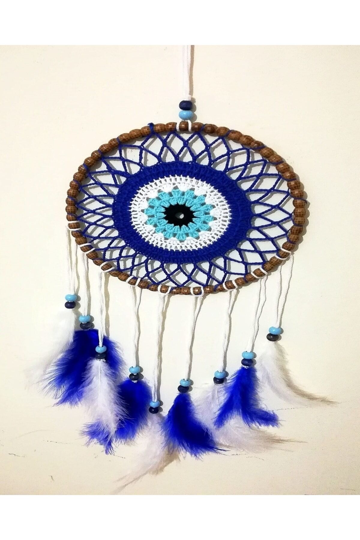 Nazar Boncuğu Desenli Kuş Tüylü El Yapımı Düş Kapanı Duvar Süsü