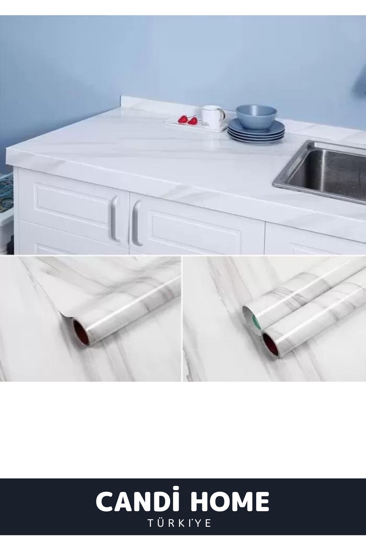 Mutfak dekorasyonunuza modern bir dokunuş ekleyen açık mermer desenli yapışkanlı kaplama kağıdı, kolayca uygulanabilir yapısıyla zamandan tasarruf sağlar; Kendinden yapışkanlı özelliği sayesinde ekstra yapıştırıcıya ihtiyaç duymadan, duvarlarınıza kolayca yapıştırılabilir ve profesyonel bir görünüm sunar; 5 metre uzunluğundaki geniş ölçüsüyle mutfak duvarlarınızda geniş alanları kaplayarak estetik bir bütünlük oluşturur;