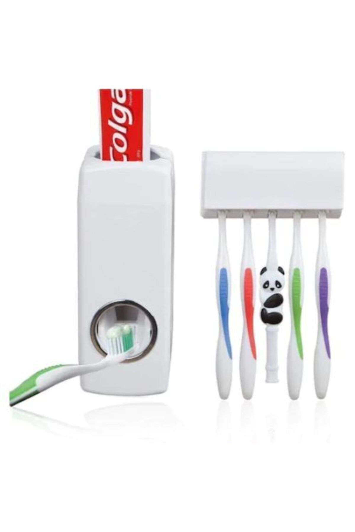 Oto Matik Diş Macunu Sıkma Cihazı 5 Adet Diş Fırçalık Aparat