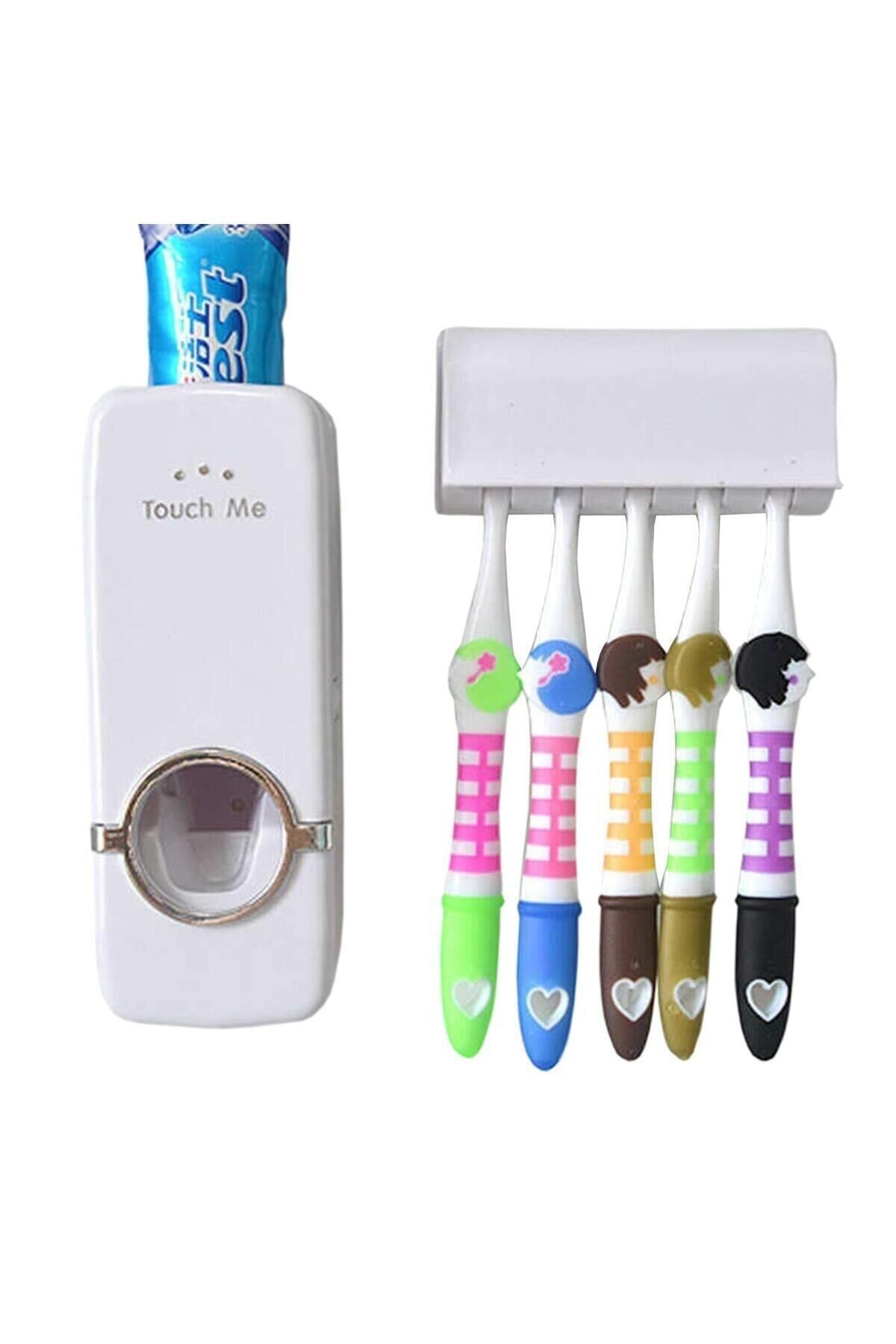 Diş Macunu Sıkacağı ve Fırça Tutucu Seti ile Pratik ve Hijyenik Kullanım! Her tip ve boyutta diş macunu için uygun olan bu set, diş macununuzu son damlasına kadar kullanmanızı sağlar.; Aynı zamanda banyonuzu temiz ve düzenli tutar.; Ürünün içindeki yüksek basınç sayesinde diş macununuzu sonuna kadar sıkarak kuruma sorununu ortadan kaldırır.; Ürünün Özellikleri: Diş macunundan tasarruf etmenizi sağlar.; ; Banyonuzu temiz ve düzenli tutar.; ; Tek tuşla kolay kullanım imkanı sunar.; ; Her tür diş macunu ve fırçasıyla uyumludur.; ; Tamamen hijyenik kullanım sunar.; ; Diş macununuzu son damlasına kadar kullanmanızı sağlar.; ; Diş fırçalarınızı düzenli ve özel bir şekilde saklar.; ; 5 adet diş fırçasını aynı anda tutabilir.; ; Beyaz renkte zarif bir görünüme sahiptir.; ; Ürün Ölçüleri: ; Diş Macunu Sıkacağı: ; Uzunluk: 16 cm ; Genişlik: 6 cm ; Derinlik: 6 cm ; Diş Fırça Tutucu:Uzunluk: 11 cm ; Genişlik: 5 cm ; Kalınlık: 3 cm ; Paket İçeriği: ; 1 Adet Otomatik Diş Macunu Sıkacağı ve Fırça Tutucu Seti ile banyonuzda hem düzeni sağlayabilir hem de diş macunu kullanımını daha hijyenik ve pratik hale getirebilirsiniz.; ;