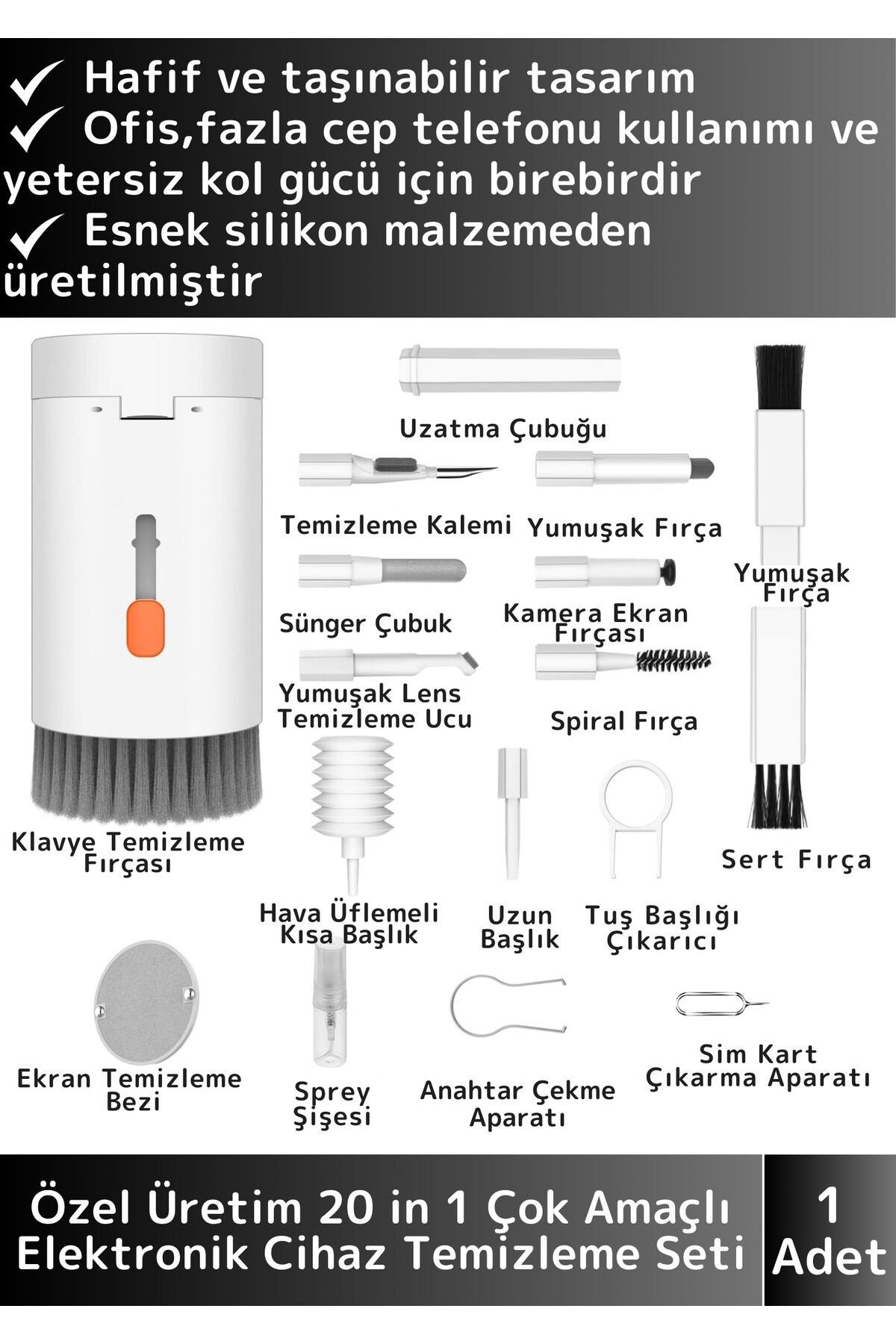 20'si 1 arada çok fonksiyonlu temizleyici araç, AirPods, iPad, iPhone, bilgisayarlar, AirPods şarj kutuları, laptoplar, telefonlar, tabletler, kulaklıklar ve kameralar gibi çeşitli cihazlar için etkili temizlik sağlar. Bu çok yönlü temizleyici, kulaklıklarınızı, klavyenizi ve ekranınızı temizlemek için idealdir. Ürün, depolama kutusuyla birlikte gelerek düzenli ve kolay erişilebilir bir kullanım sunar. Gelişmiş tasarımı sayesinde, cihazlarınızın her köşesine ulaşarak hijyen ve performansını artırır. Hem günlük bakım hem de derin temizlik ihtiyaçlarınızı karşılayacak şekilde tasarlanmış bu araç, tüm elektronik cihazlarınızın uzun ömürlü olmasına katkıda bulunur.