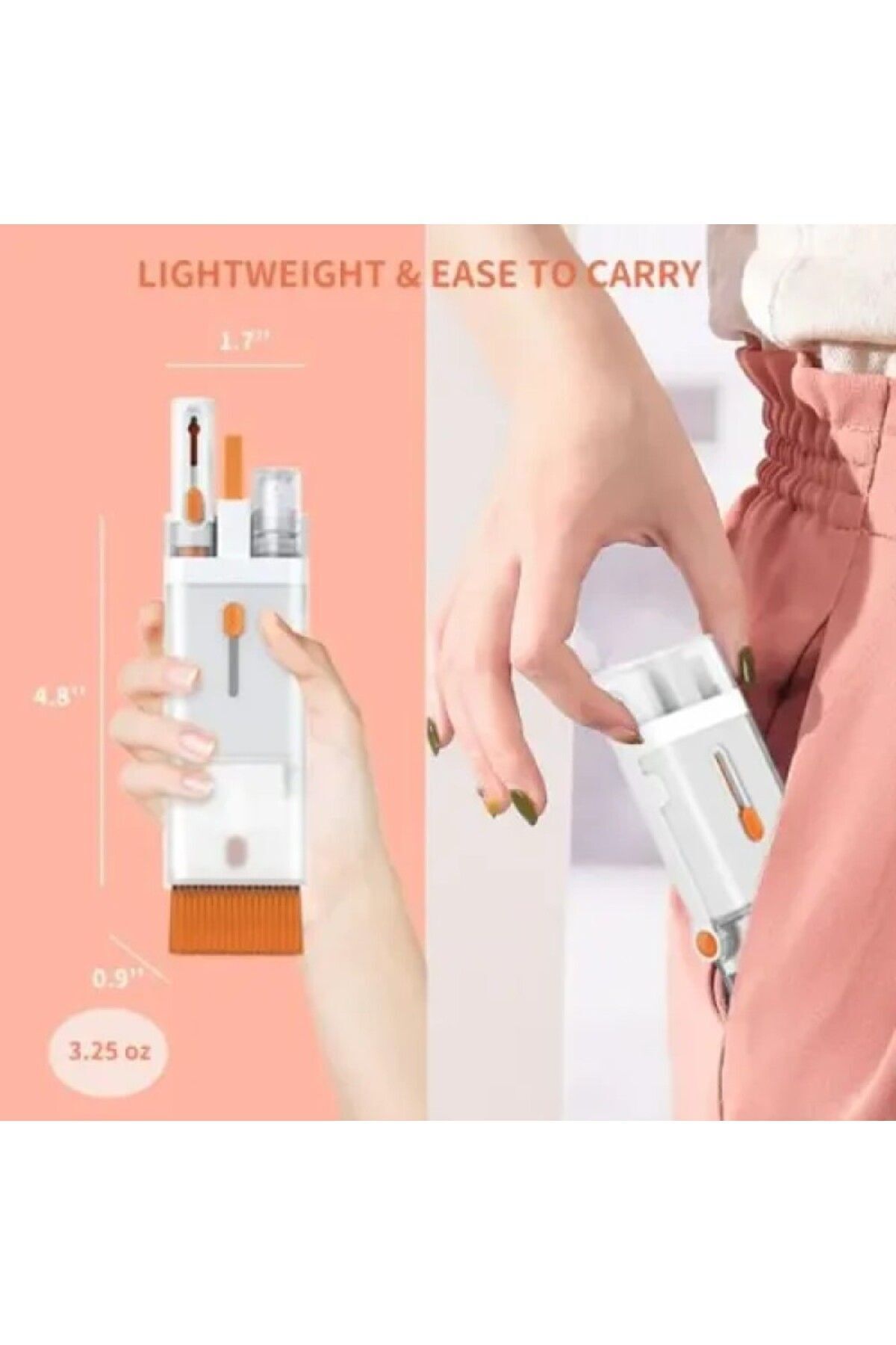 ÇOK AMAÇLI TEMİZLEYİCİ KİT VE TELEFON STANDI ; Ürün Özellikleri; ; Çok amaçlı temizleyici kit ile, bilgisayar klavyelerinizin tuşlarınızın arasındaki çıkması güç olan toz ve lekeleri kolaylıkla temizler. ; Klavye tuş takımlarınızın altını da aynı şekilde kolaylıkla temizleyebilir ve ulaşılması güç alanlara kolaylıkla ulaşabilirsiniz. ; Telefon ekranınızı temizler, ve telefonunuz yada tabletiniz için bir standa dönüşür. ; Bilgisayar çantanızın içinde, yanınızda mutlaka bulunması gereken yer kaplamayan multifonksiyonel bir kit. ; Paket İçeriği 1 adet çok amaçlı temizleyici kit ve telefon standı. ;