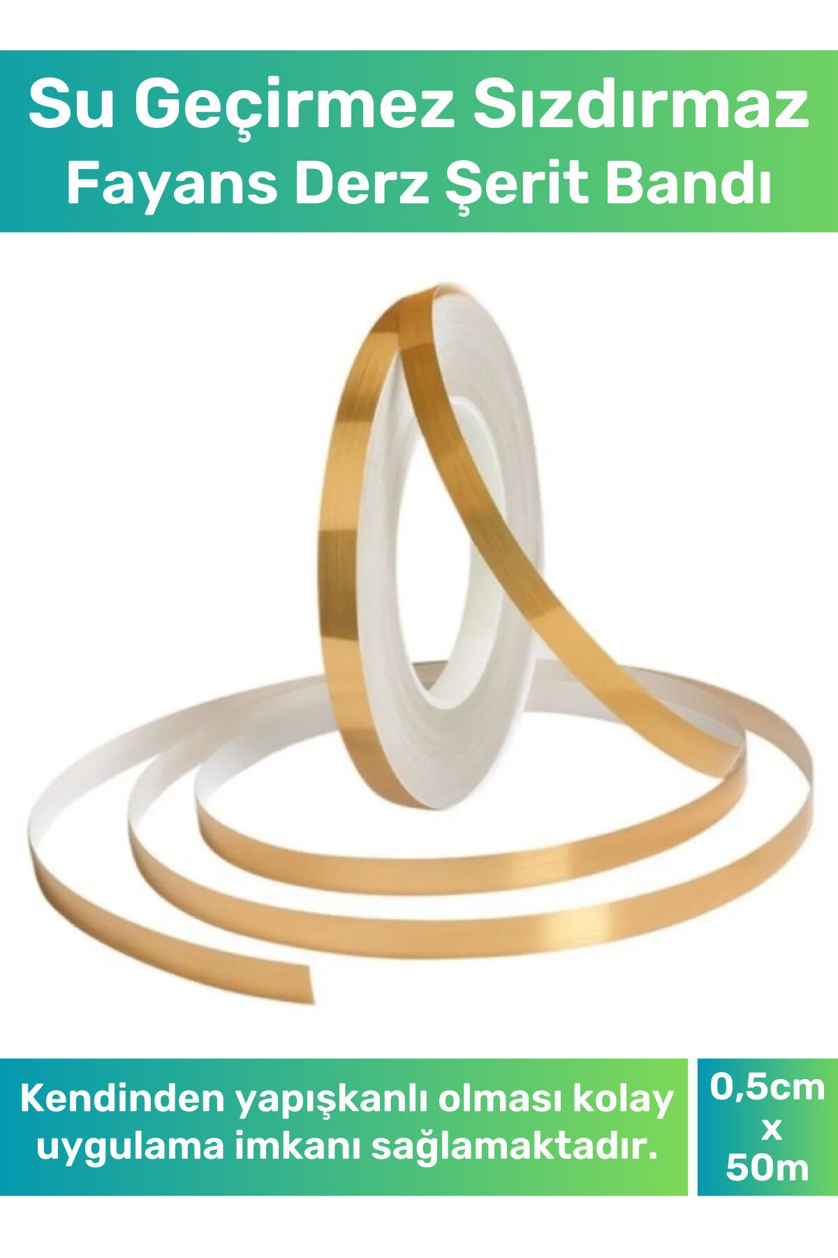 Özel Üretim Su Geçirmez Sızdırmaz Dekoratif 0,50 Cm 50 Metre Gold Fayans Arası Derz Şerit Bandı