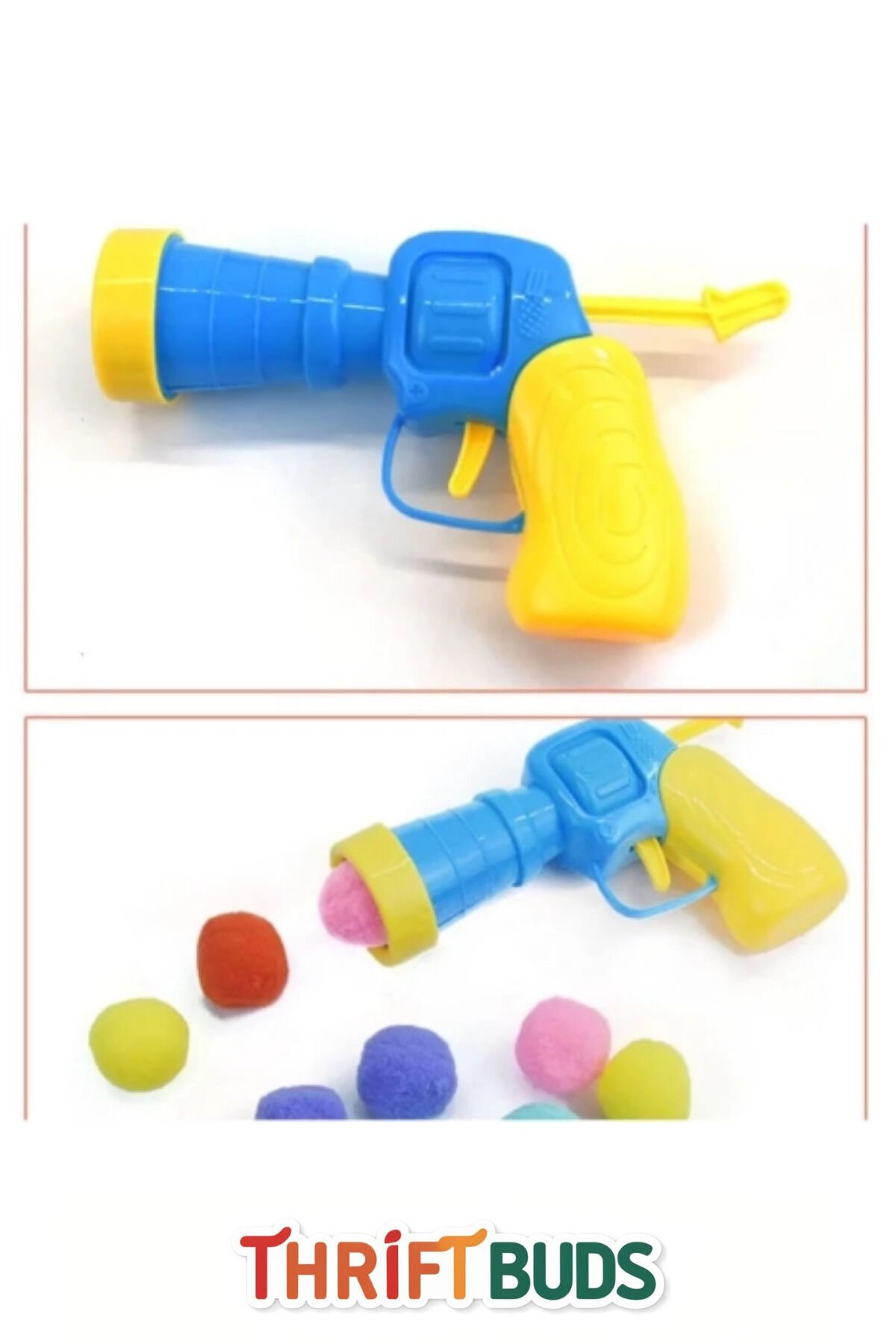 - 1 adet peluş top fırlatan oyuncak tabanca, 30 adet peluş top.