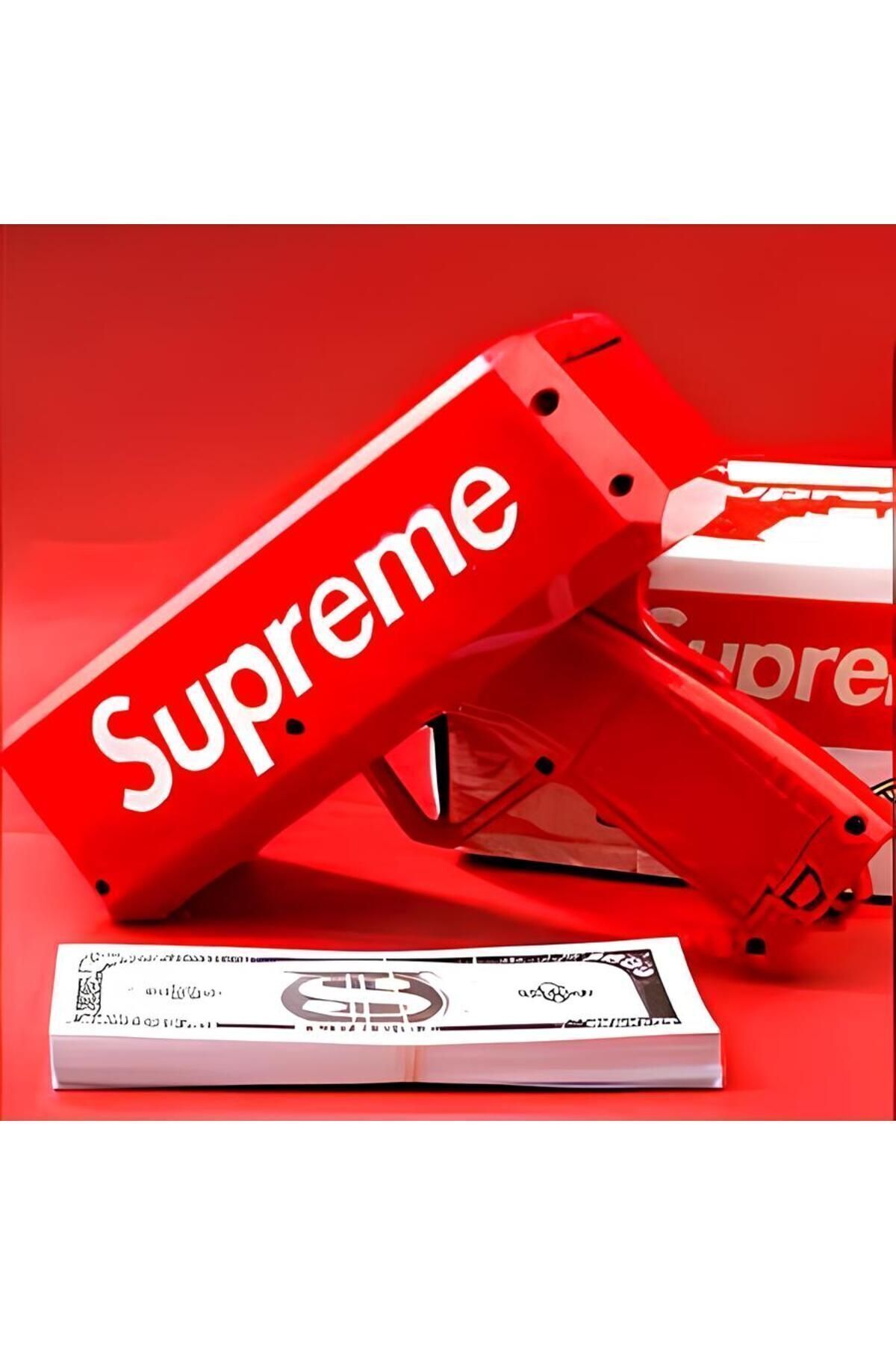 Supreme Money Gun Para Saçma Tabancası Para saçma makinasını düğünlerde, bekarlığa veda partilerinizde, eğlencelerde, doğum günü partileri vb. bol eğlenceli her yerde kulllanabilirsiniz. ; Ürün Özellikleri: Yüksek kalite abs malzemeden üretilmiştir. paket içerisinde 100 adet dolar tasarımlı kağıt yer almaktadır. ; Para ebatlarına getirilerek el ilanı, broşür, kartvizit gibi kağıtların dağıtımıda sağlanabilir. ; 4 adet AA pil ile çalışmaktadır. ( Piller pakete dahil değildir. ) ; Muhafazalı kutusunda gönderilmektedir. ; Renk: Kırmızı Ürün Ebatları: Uzunluk: 19 cm Derinlik: 9 cm Yükseklik: 16 cm ; Paket İçeriği: 1 adet para saçma tabancası ;