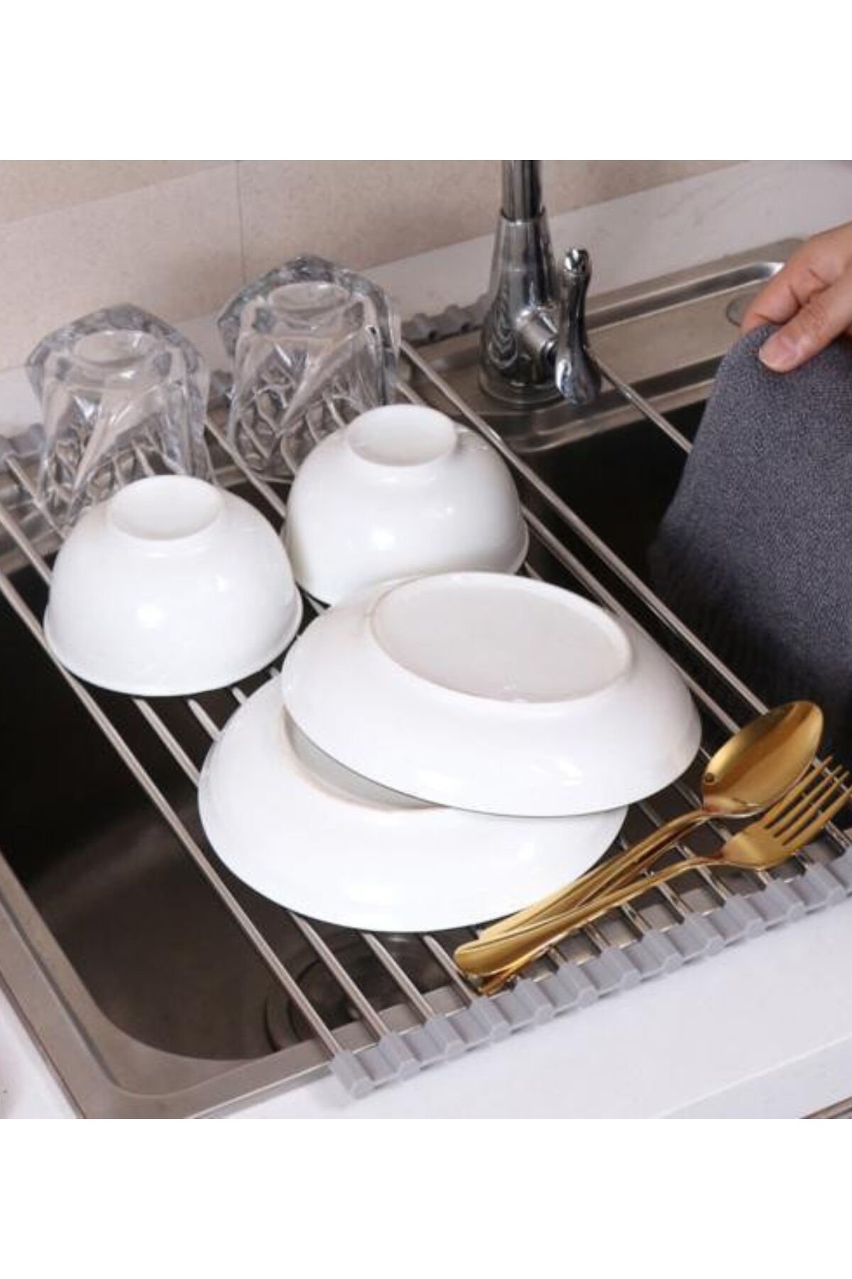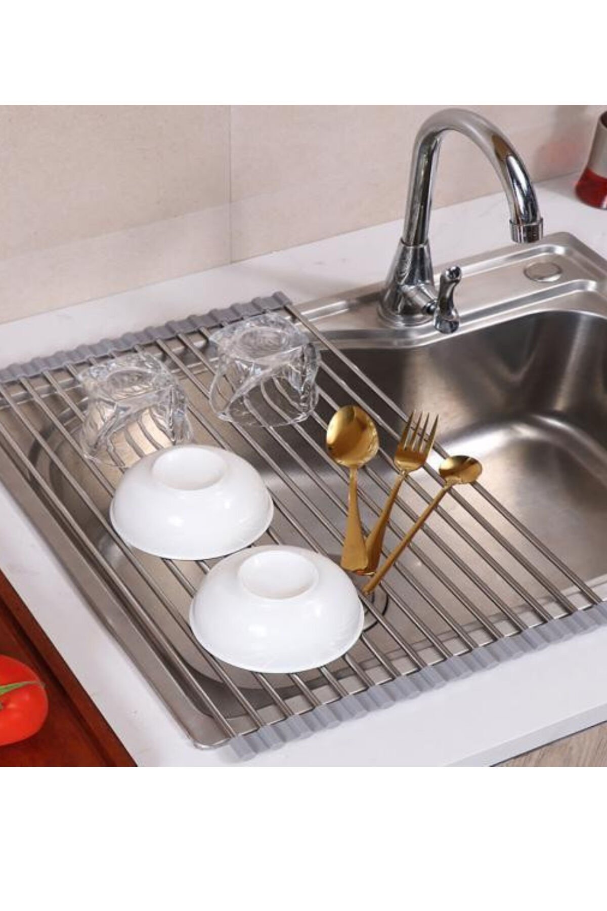 Paslanmaz Çelik Evye Üstü Katlanır Nihale - Pratik Sebze, Meyve ve Bulaşık Kurutma Süzgeci