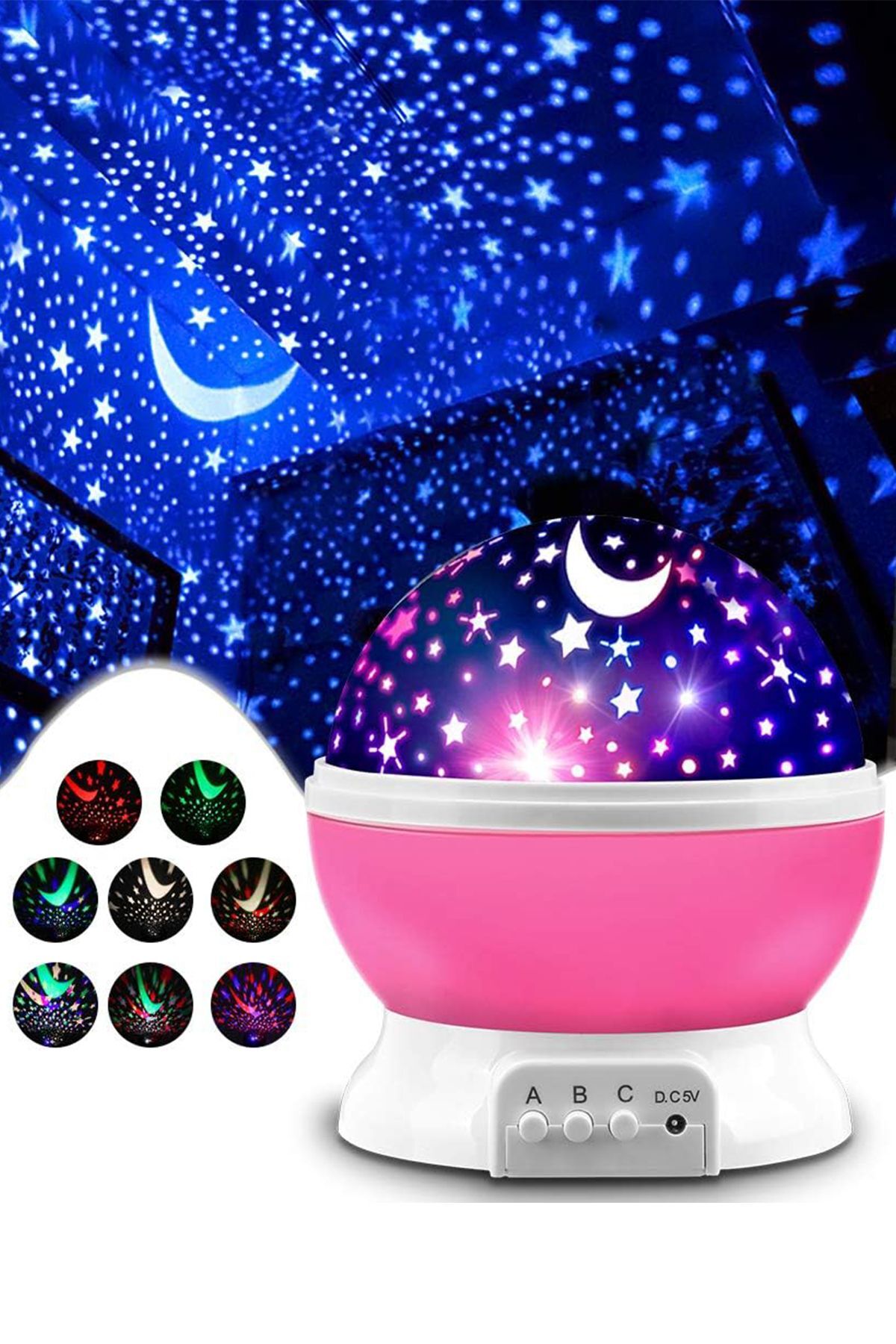 Pembe Projeksiyon Masa Lambası Duvara Yansıtma Çocuk Odası Oyuncak Küre Işıklı Otomatik Dönen Avize